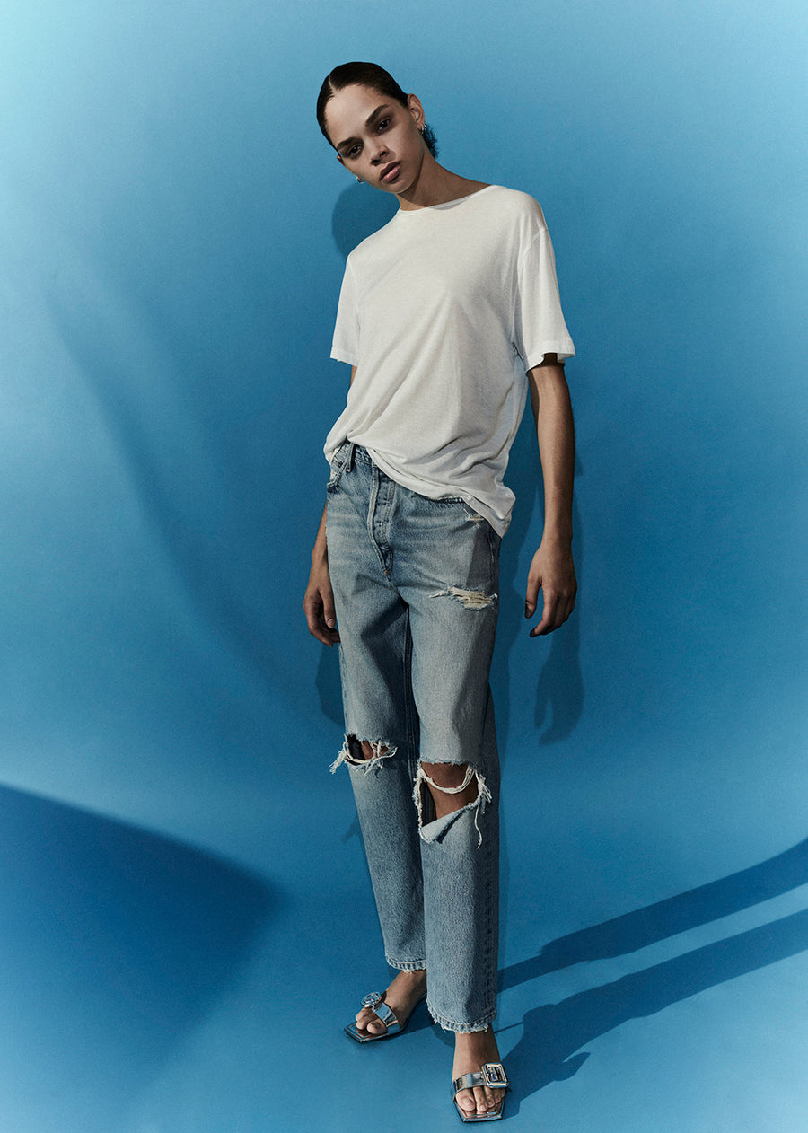 Cue the nostalgia. This 90’s inspired mid-rise is designed to sit relaxed on the waist with an eased up fit through the hips, finished with a loose, straight leg. Style back to just about anything, from a classic tee to a chunky knit.