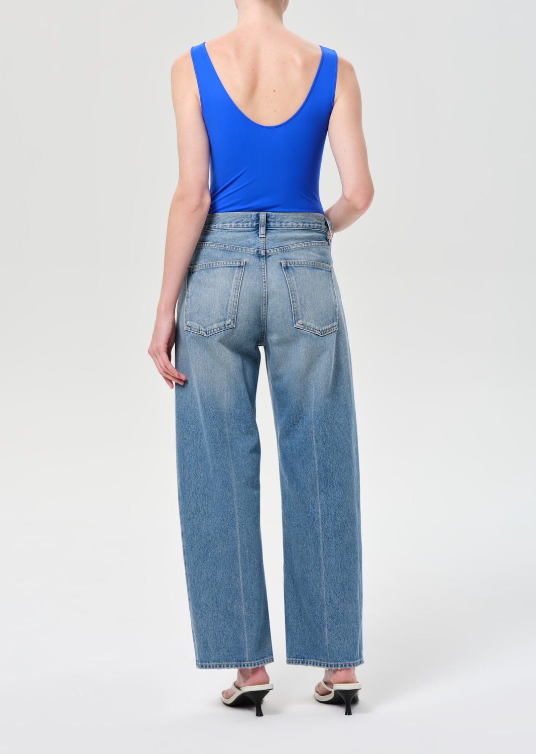 The Arc Jean offers a refined take on a signature silhouette. Done in a medium vintage indigo with washed creased detail, it features a mid-rise waist and relaxed wide-leg shape that balances structure with effortless ease.