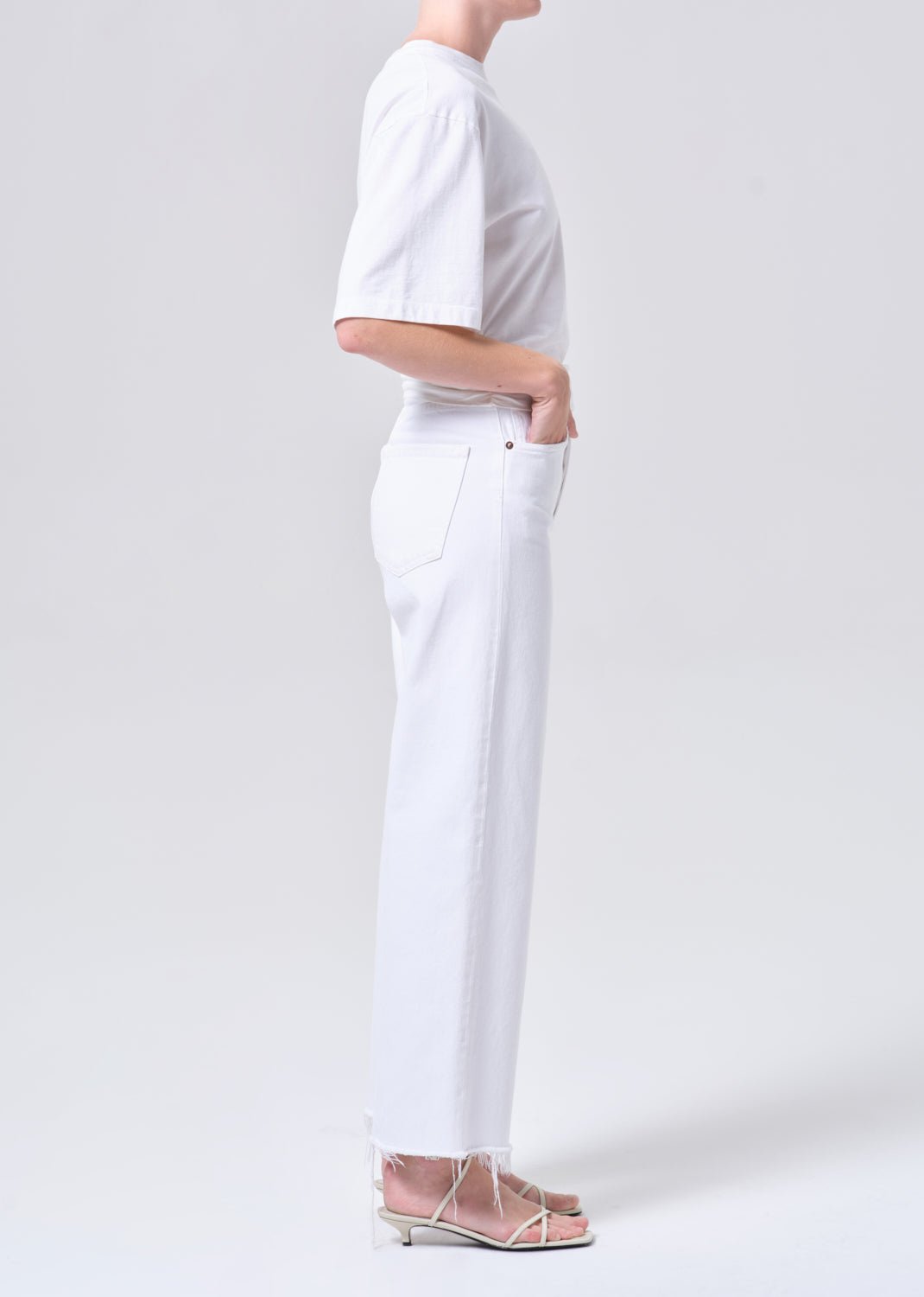 A high-rise wide-leg silhouette, the Ren Jean is designed with a flattering high waist, a relaxed fit through the hips, and a clean, elongated leg that feels both timeless and elevated. Rendered in a soft clean classic white denim.