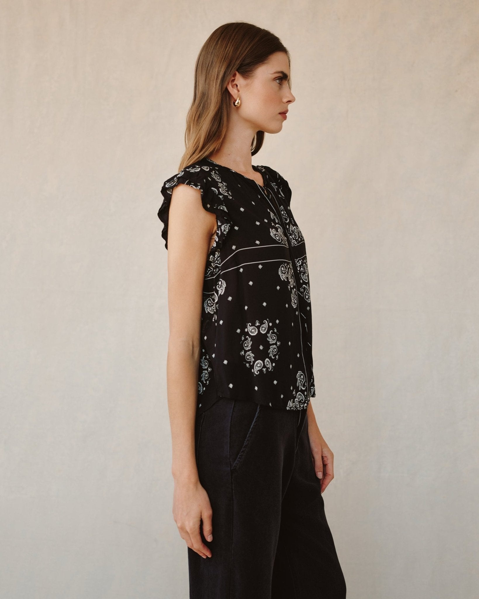 Bella Dahl Ruffle Sleeve Tie Neck Top