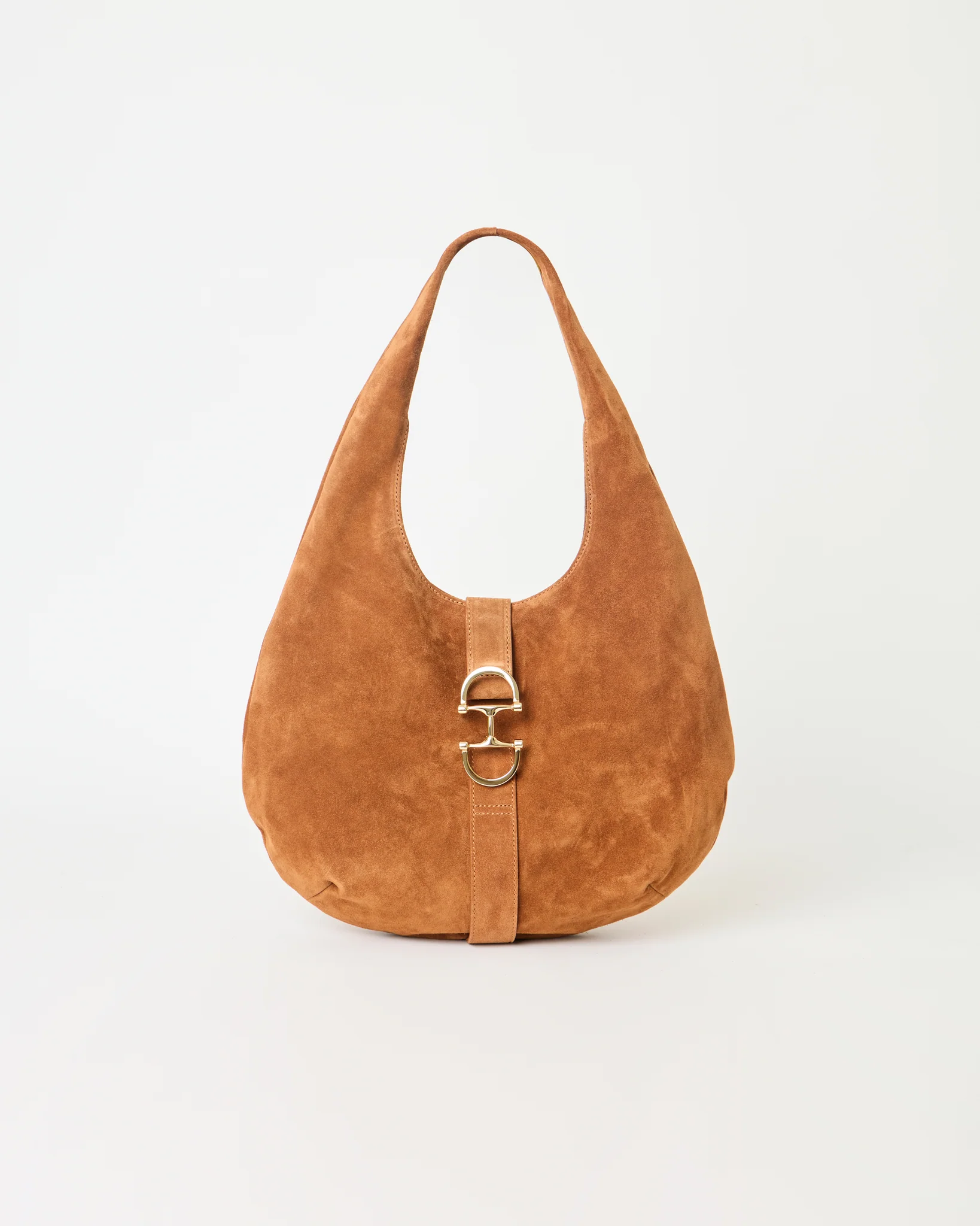 The Rumi is a classic hobo bag made from high-grade genuine suede. Finished with a gold-tone equestrian buckle closure, this suede hobo is a sophisticated addition to any wardrobe.