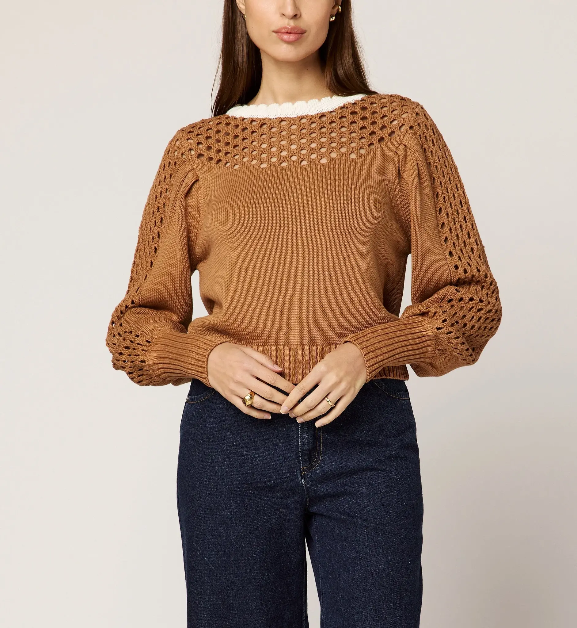 Featuring a relaxed silhouette with subtle open-knit detailing and refined ribbed edges, this lightweight sweater is perfect for layering or wearing on its own.