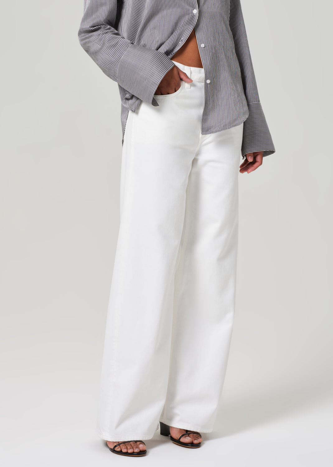 Referencing baggy legged silhouettes from the early 2000’s, the Paloma sits at the waist with vintage detailing and an easy flowing leg. Style yours with anything from a breezy blouse to a simple slim tank.