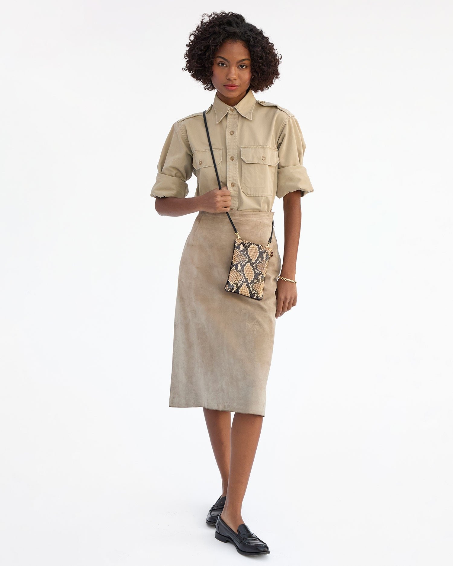 - Made of snake embossed Italian leather