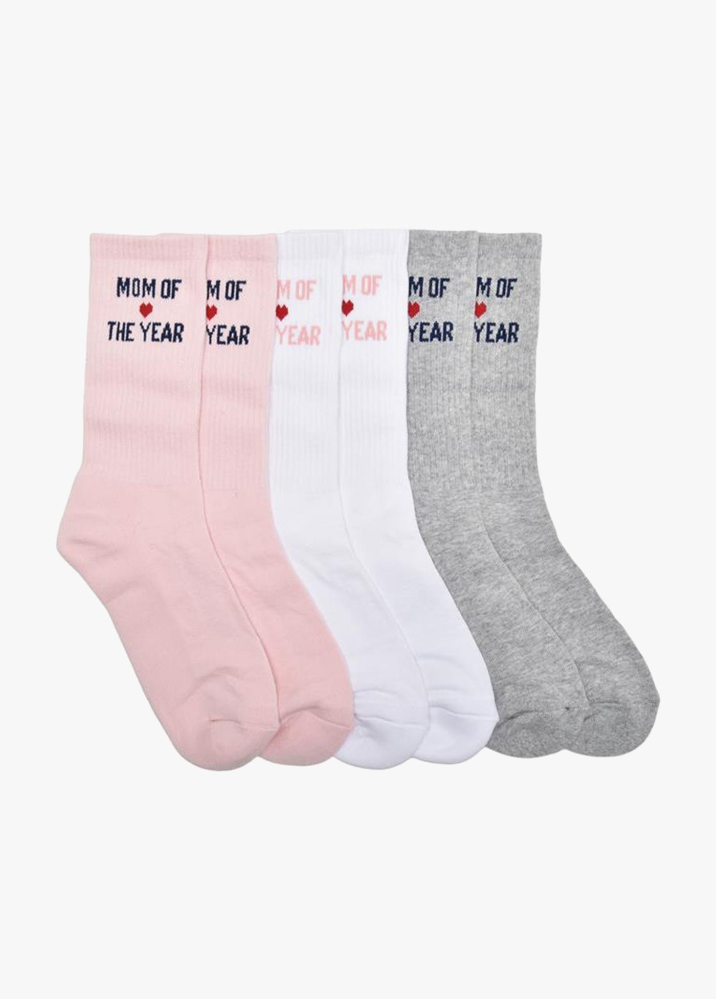 Three pairs of socks featuring a mid-crew length (perfect for styling with sneakers & boots), soft cotton-blend knit with everyday stretch, signature Mom Of The Year embroidery, and the most giftable packaging. (Because moms really do it all.)