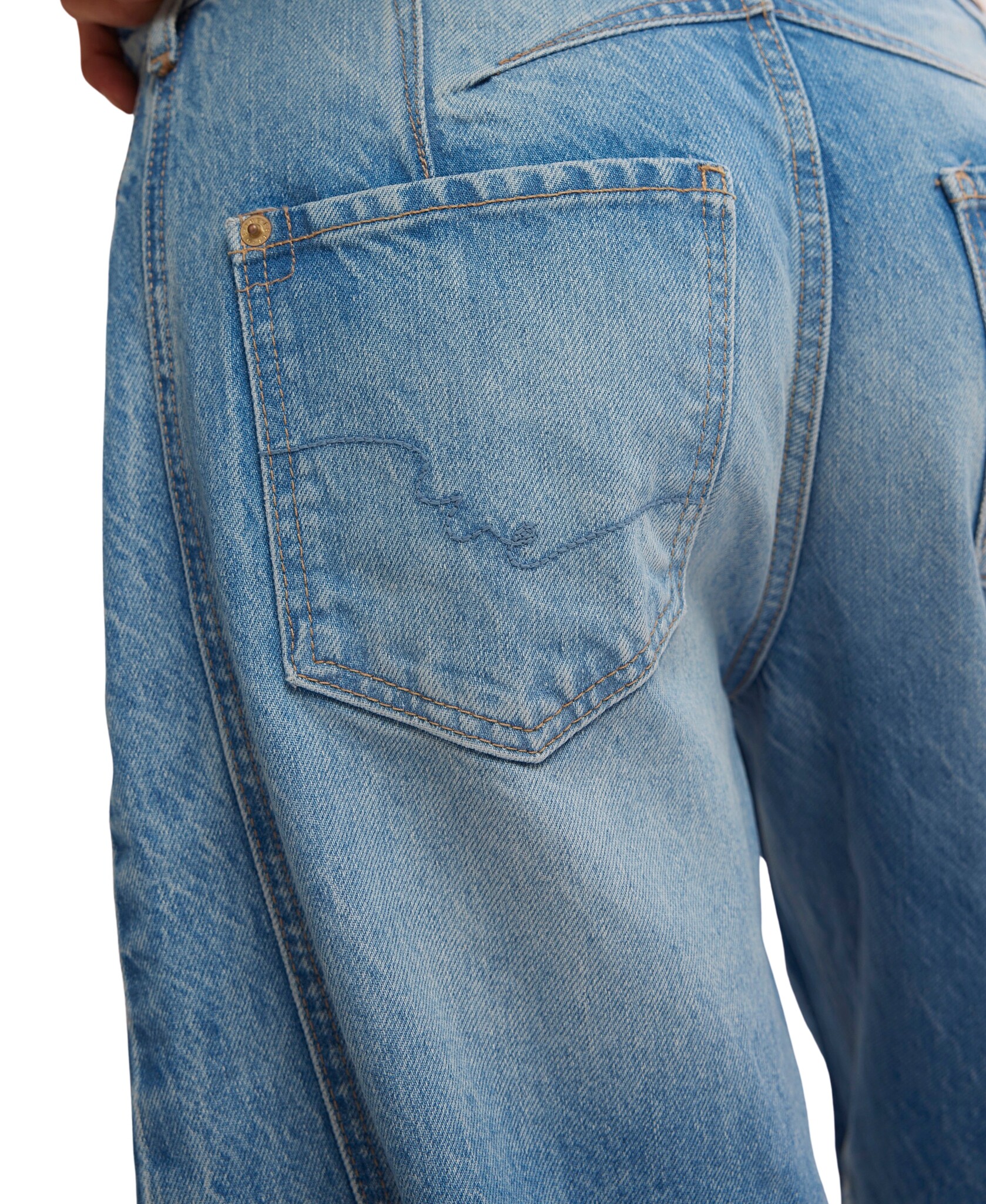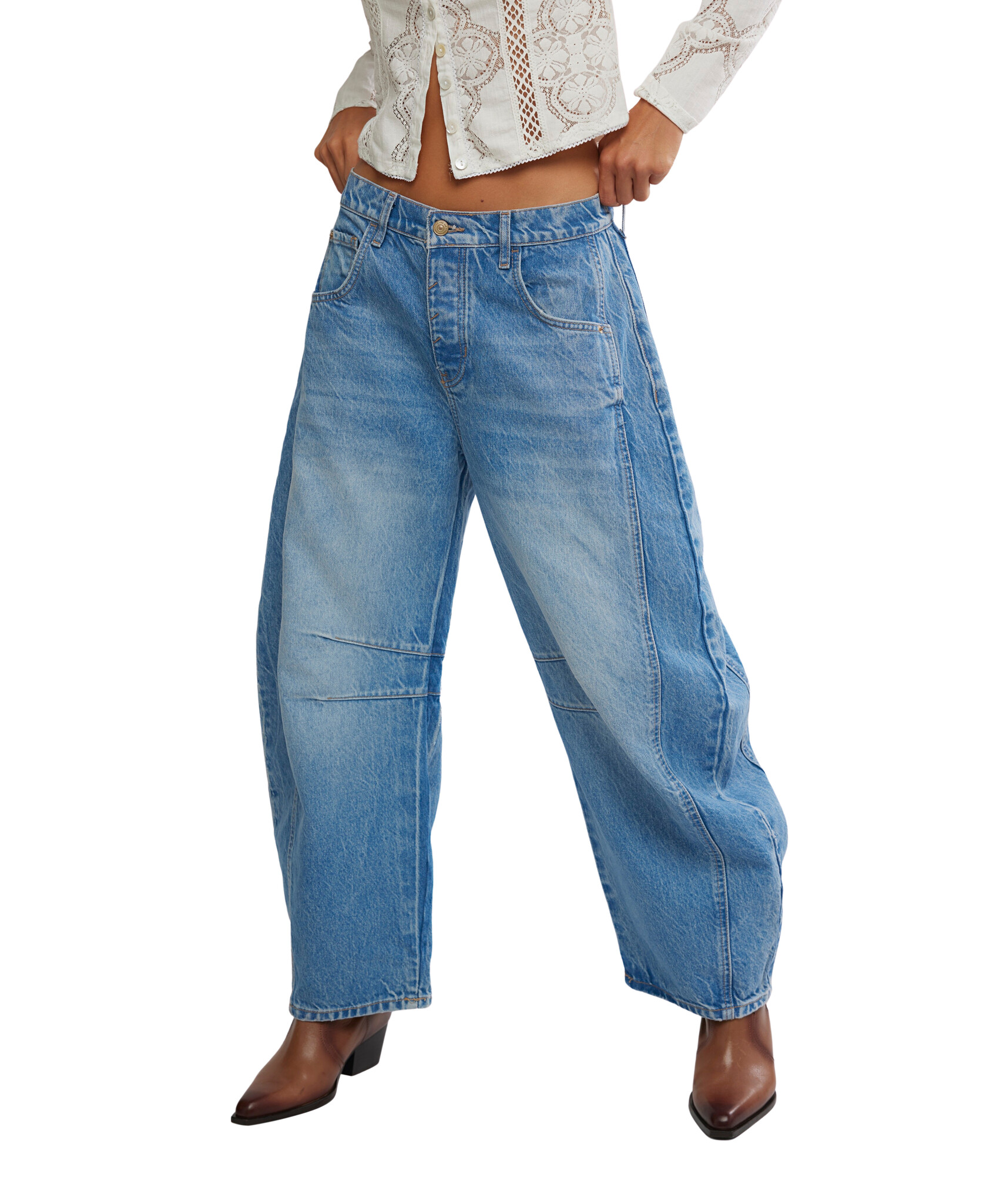 So bold barrel jeans from the We The Free collection featured in a mid-rise fit with subtle distressed detailing and wide-legs that taper at the ankle.