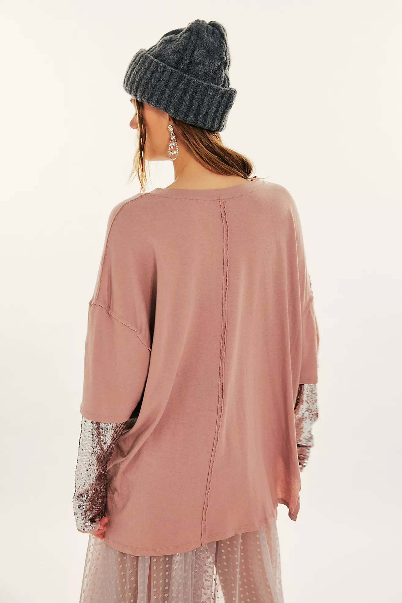 Too-cool and one-of-a-kind from the We The Free collection, this top features oversized t-shirt piecing with contrast sequin sleeves and thumbhole detailing.