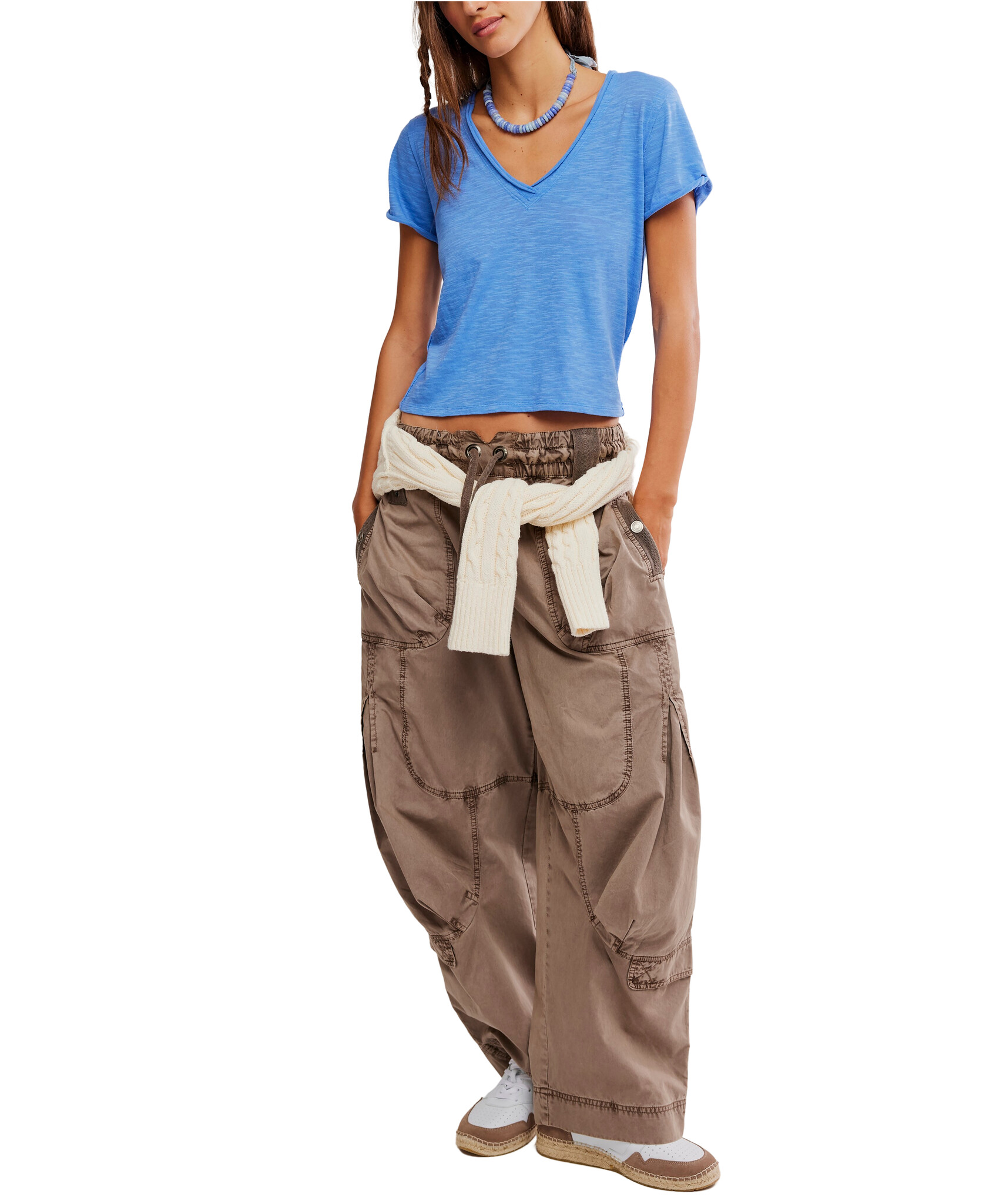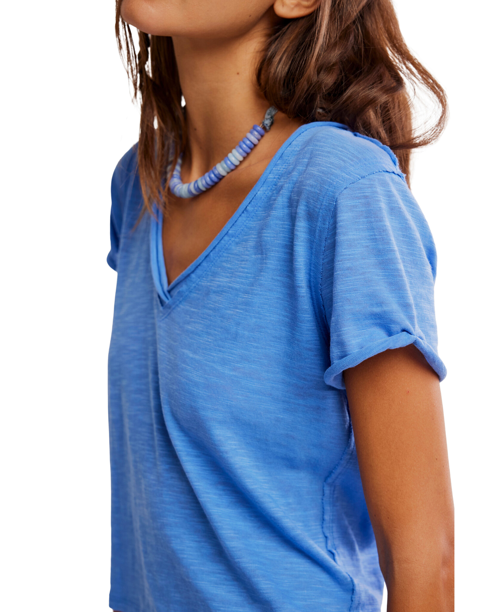 Perfect for layering, this short-sleeved tee from We The Free is featured in a boxy cut and a V-neckline for endless outfitting potential.