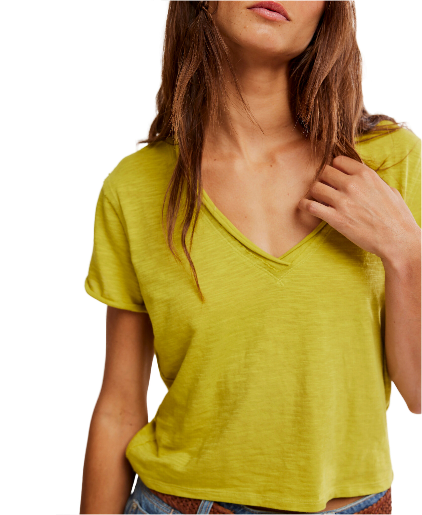 Perfect for layering, this short-sleeved tee from We The Free is featured in a boxy cut and a V-neckline for endless outfitting potential.