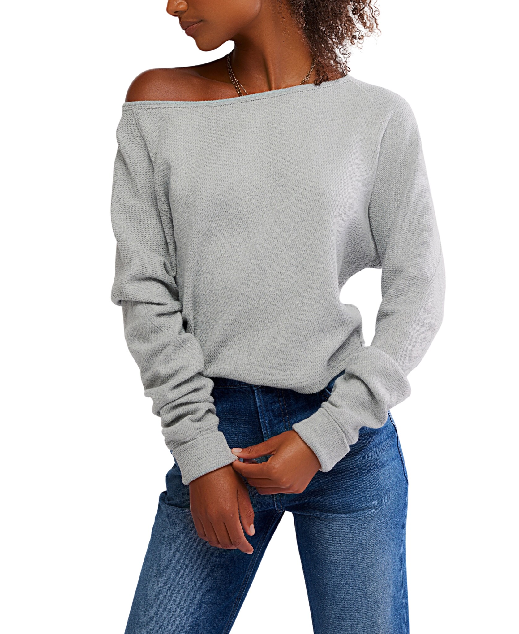 A cozy base for endless outfitting, this long sleeve from We The Free is featured in a thermal fabrication with a flattering boat neckline and slouchy dolman sleeves.