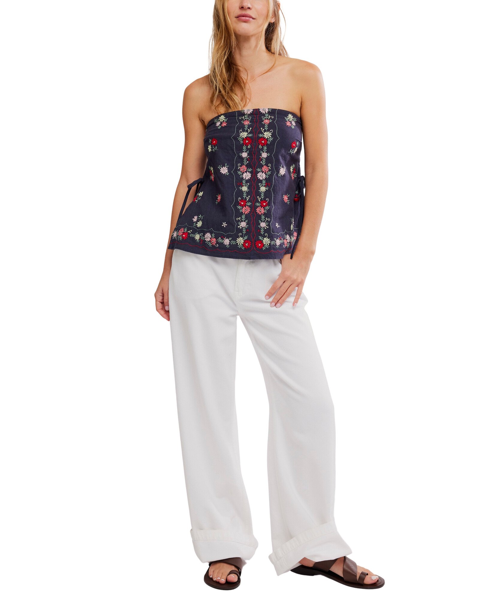 Stunning embroidery takes this sweet cotton tube top to the next level.