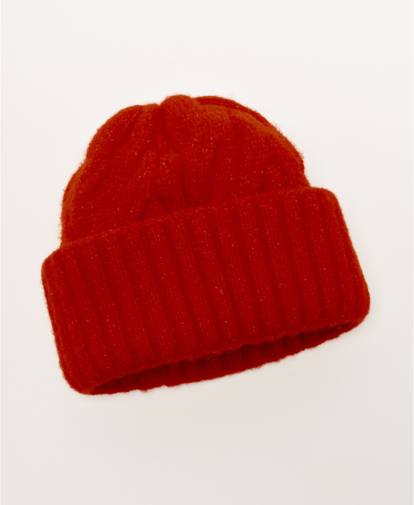 Sure to be your go-to pick to pair with any look from season to season, this staple beanie is featured in a forever classic knit fabrication with cable detailing throughout and defined ribbed cuff at bottom for added dimension.