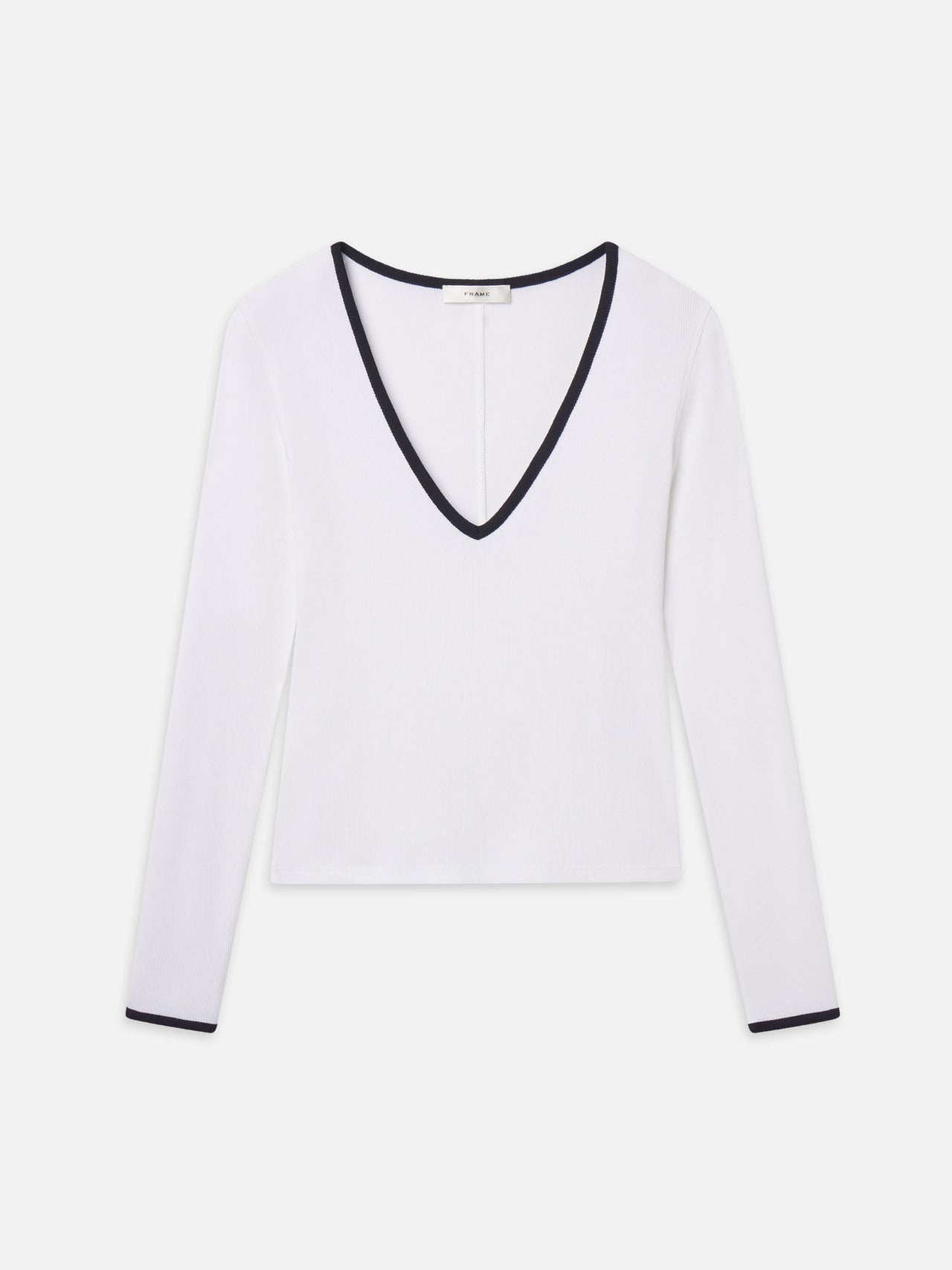A sleek essential with a sporty finish. The Sporty V Neck Top is cut from a soft rib fabric with a deep V neckline and contrast trim. Designed to wear on its own or layered, it brings a modern edge to everyday dressing.