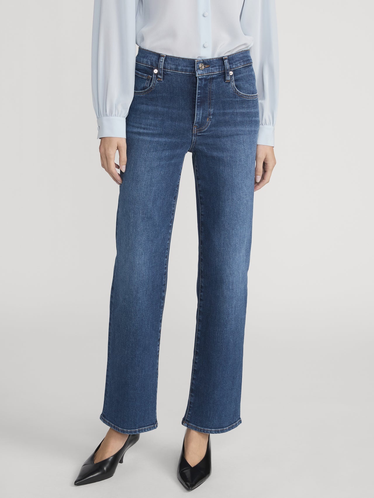 Relax in your next must-have super-stretch jean. Featuring a true mid-rise, ankle-length inseam, frayed raw hem and slim wide leg, the Mellow is emblematic of the next generation of FRAME.