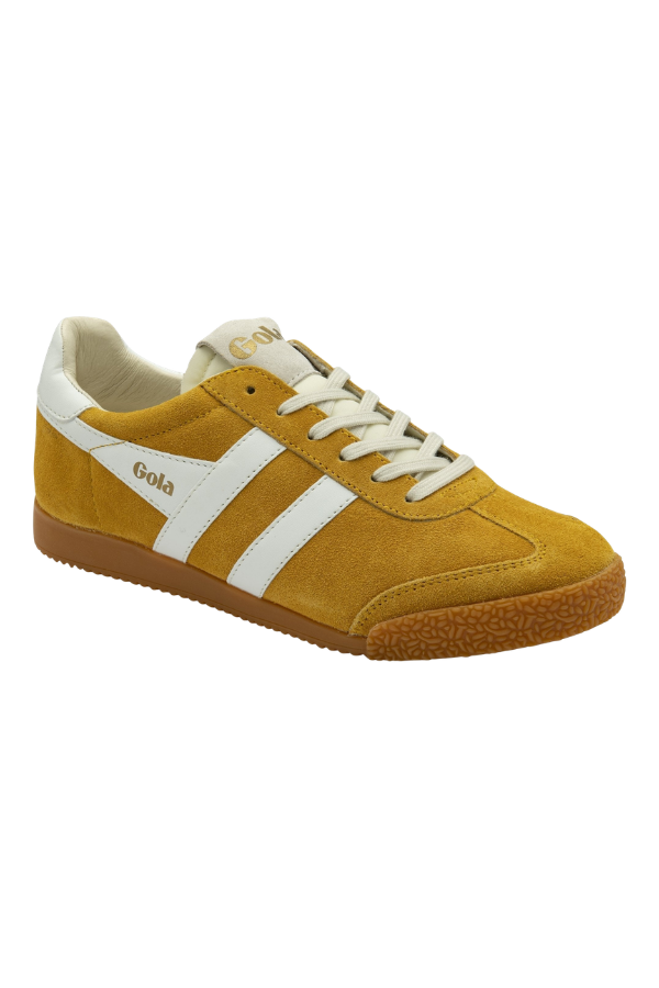 An old school gum sole, in just the right vintage tone, is reminiscent of days in the school gym, whilst saturated color combinations such as this pollen and off white give a thoroughly modern looking women’s sneaker.