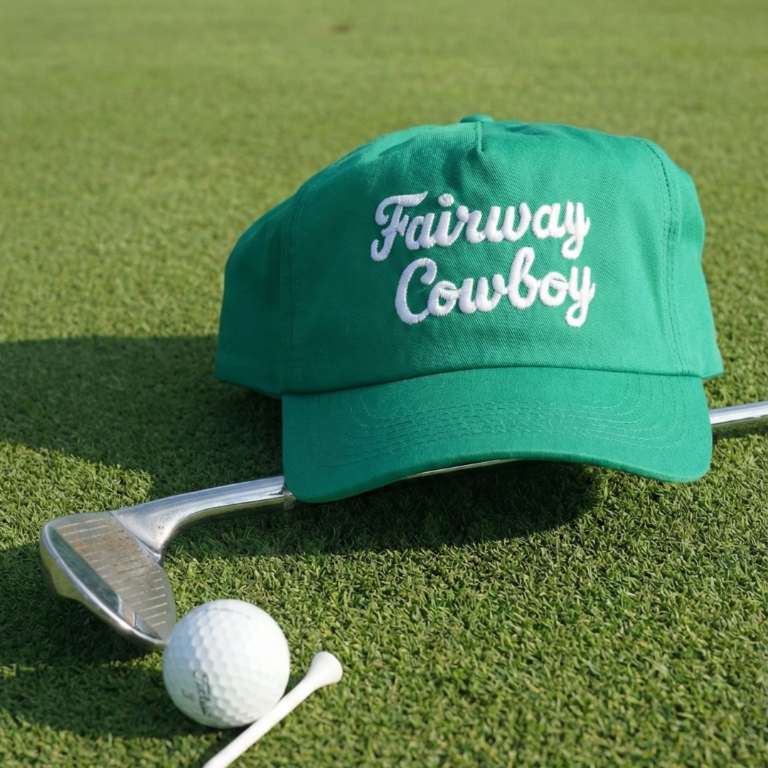 The Fairway Cowboy is a low-to-mid profile golf hat. Crafted from 100% canvas cotton, this hat has that perfectly broken-in, dad-hat feel. Snap it on, crack a drink, and pretend you’re keeping score (we won’t tell).
