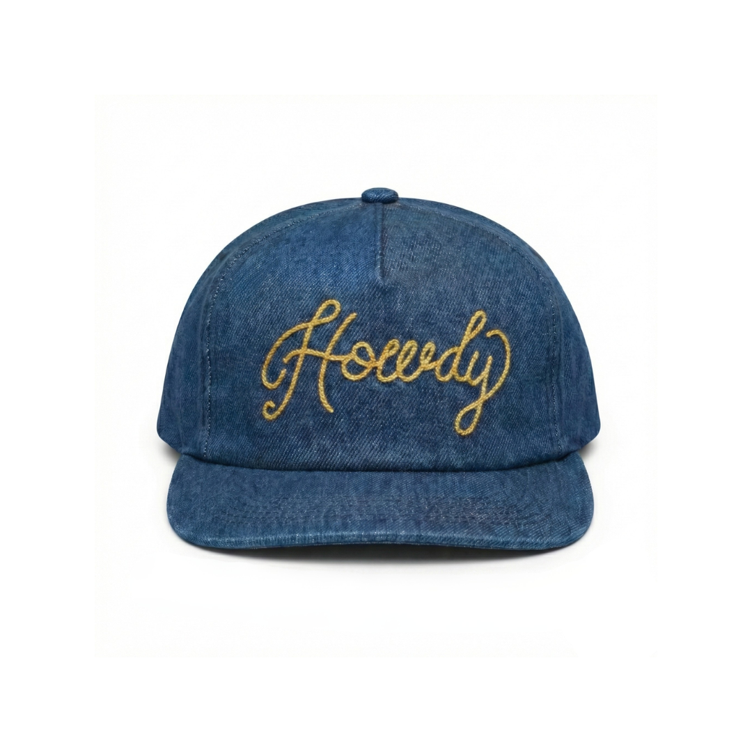 Calling all cowboys & cowgirls: we designed this lid to look effortlessly cool and undeniably sexy. Crafted from sultry dark denim, it’s finished with stunning, vintage-inspired gold chain stitching that does the flirting for you.