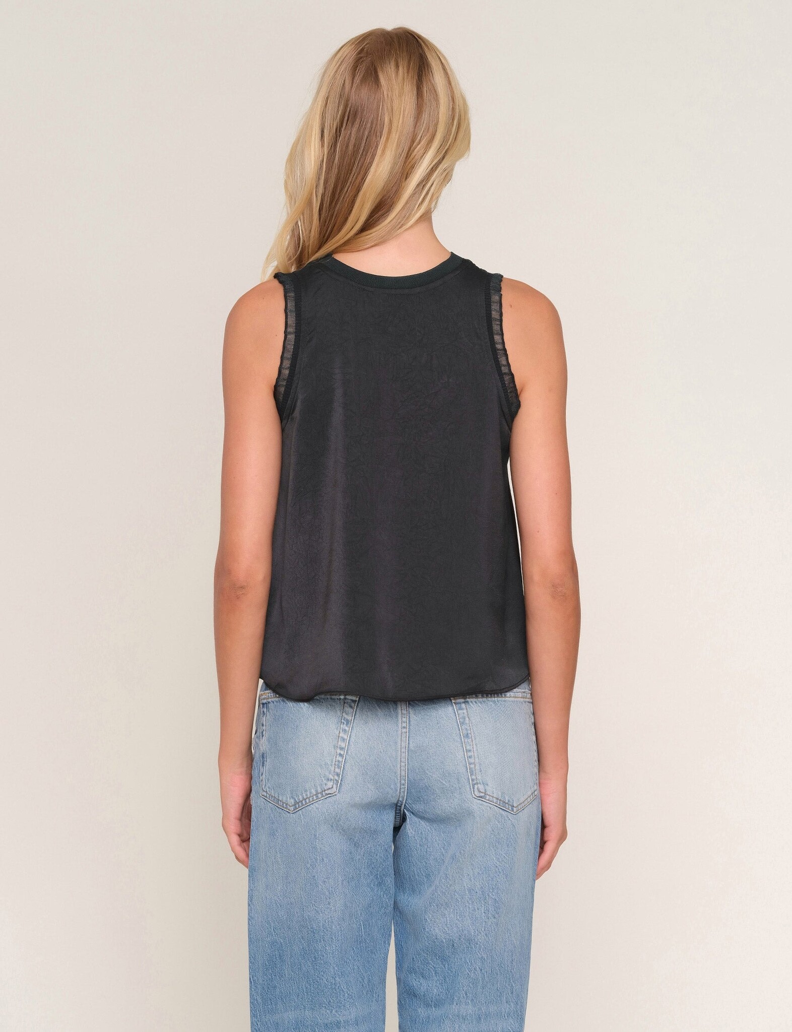 The Tosca Top is a crew neck blouse with a rib trim at the neckline. It has a fun, flirty fit that features an a-line cut.