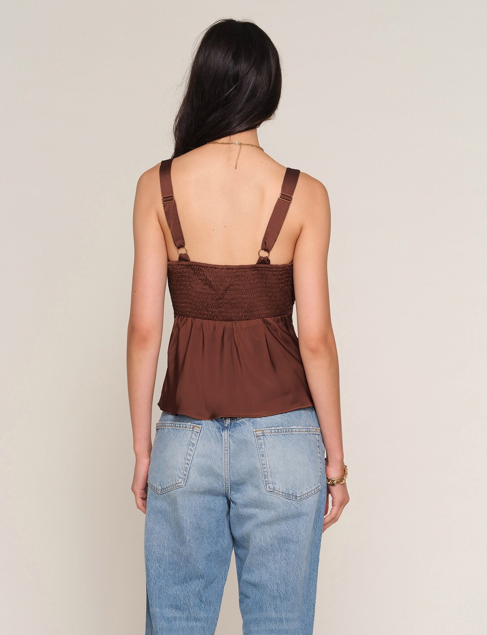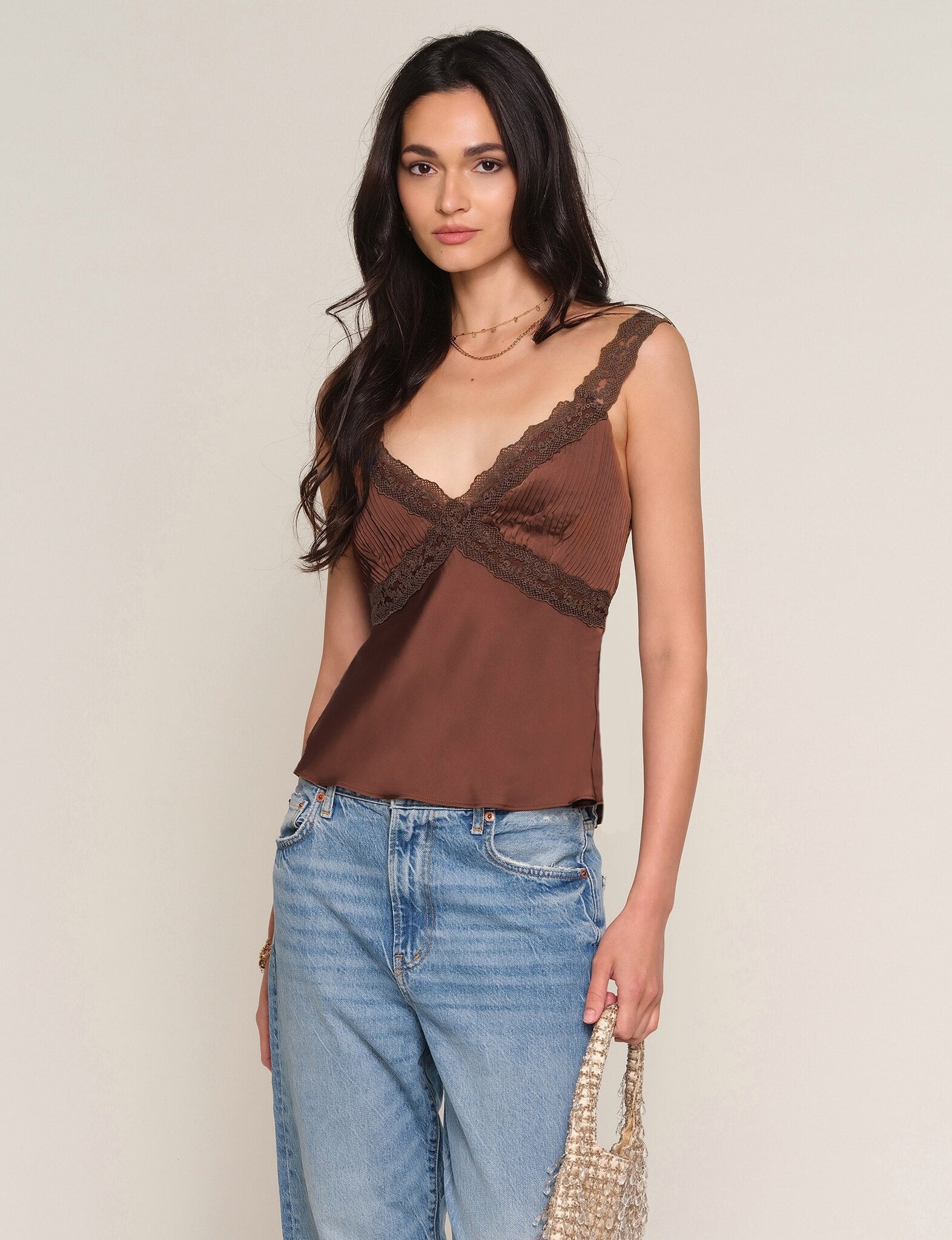 The Nelis Cami is made from a soft satin. It features delicate pintucks, lace straps and a slim fit. We love it thrown on with a pair of jeans.