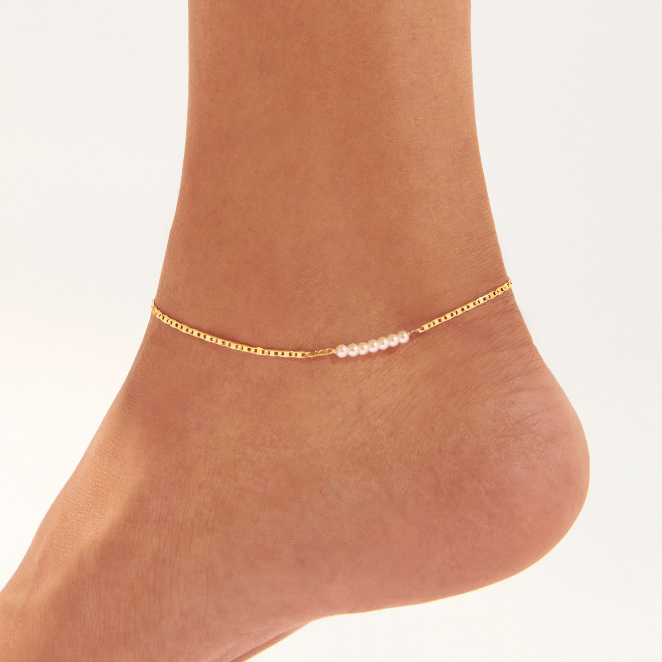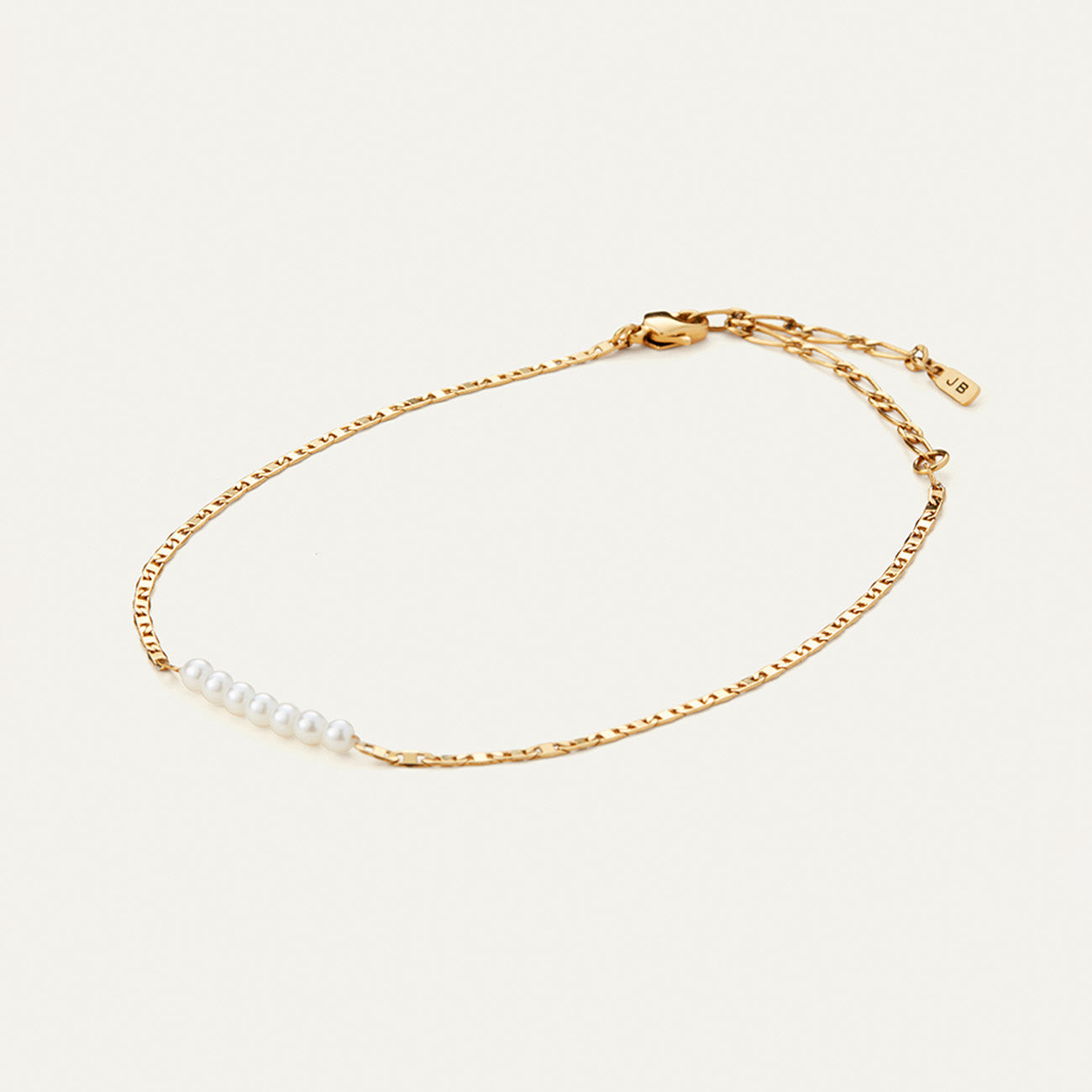 A teeny strand of glass pearls is suspended from a delicate mariner chain. The built-in extender allows for a comfortable fit. Finished in high-polish gold.