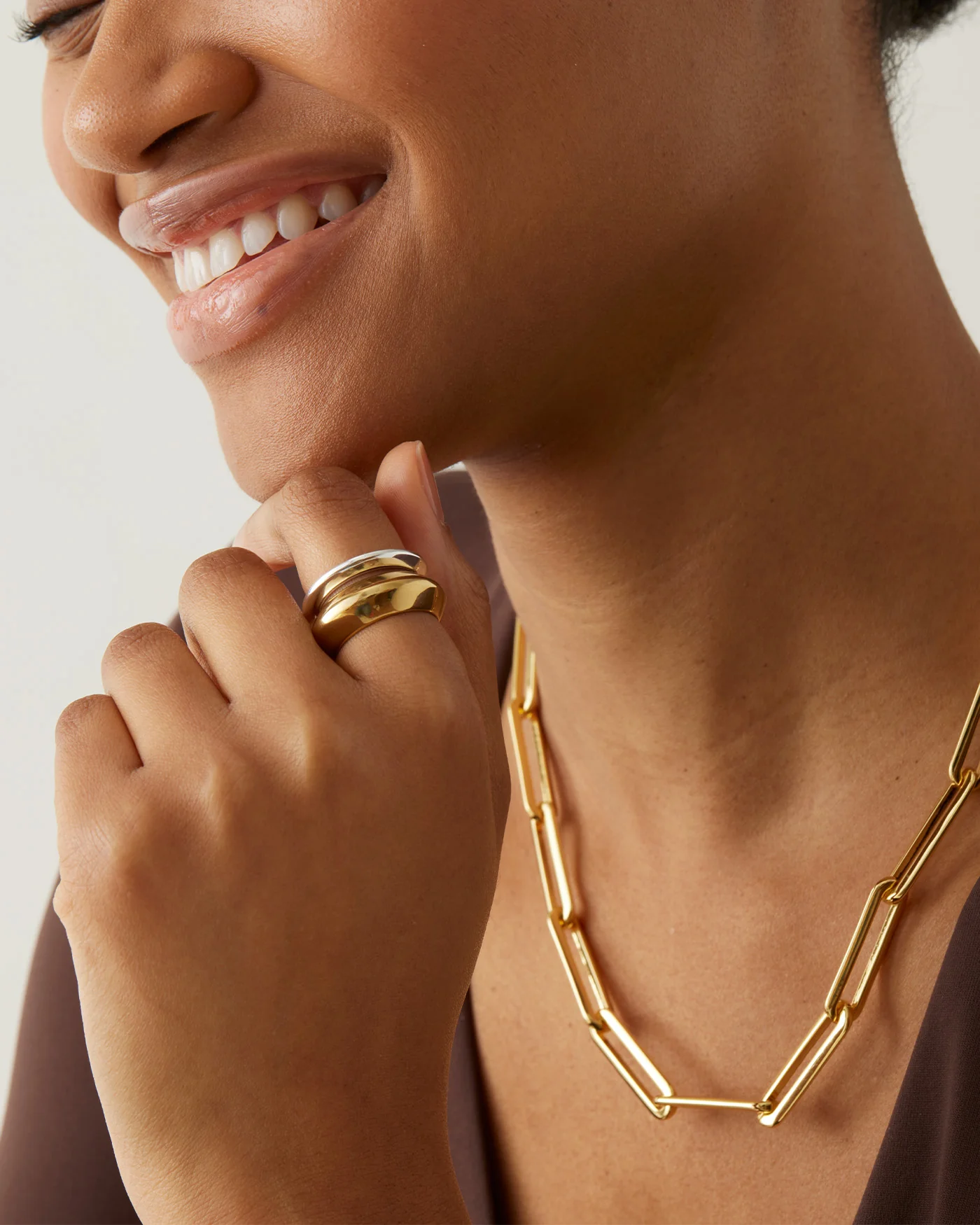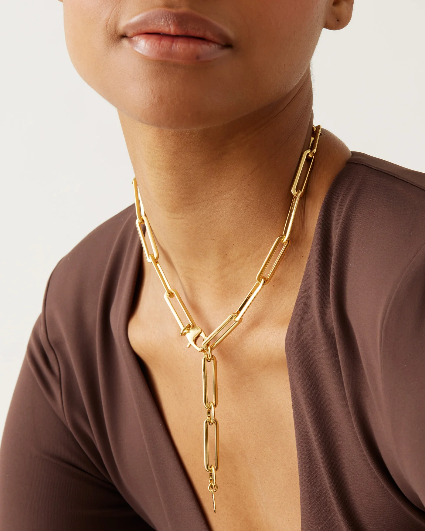 This modern paperclip link necklace includes non-removable extender rings, making it easy to adjust to your ideal length, so you can focus on more important things like what to wear because this necklace works with every neckline in your closet.