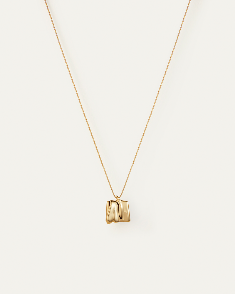 Mirroring a sand dune shaped by natural winds, this organic square pendant glides along a delicate gold box chain. This design includes a shortening ring, making it easy to adjust and wear at 20" or 22"