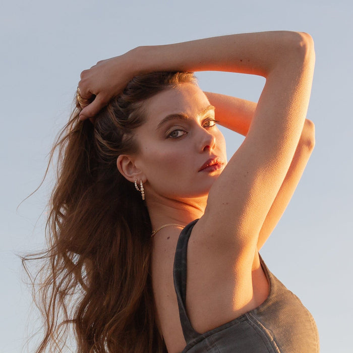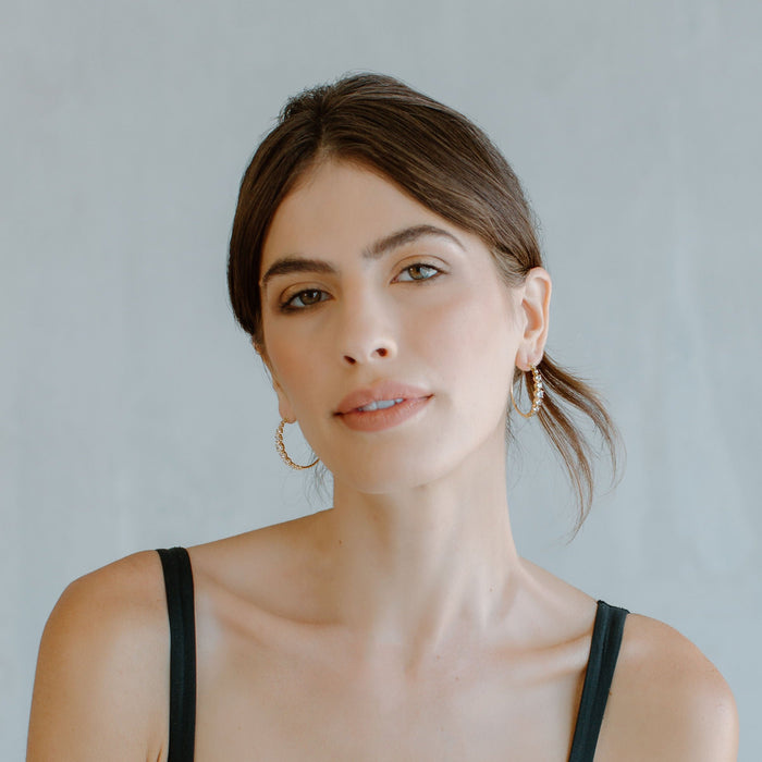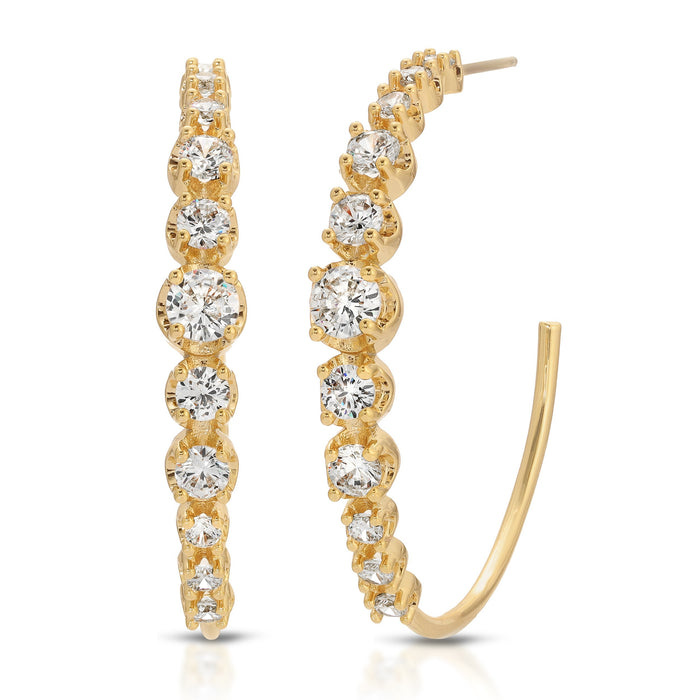 Dazzle in these gold platex hoop earrings, lined with brilliant round-cut cubic zirconia stones. Lightweight yet luxurious, they deliver the perfect sparkle for everyday elegance or evening glam.