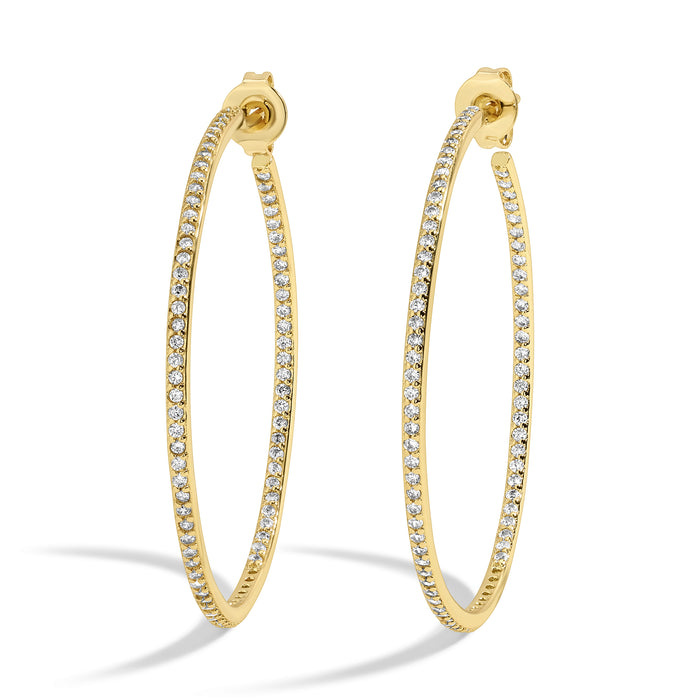Dazzle with every turn in these CZ pavé hoop earrings, crafted in radiant yellow gold. Their refined sparkle makes them the ultimate versatile accessory—equally perfect for casual glamour or black-tie sophistication.