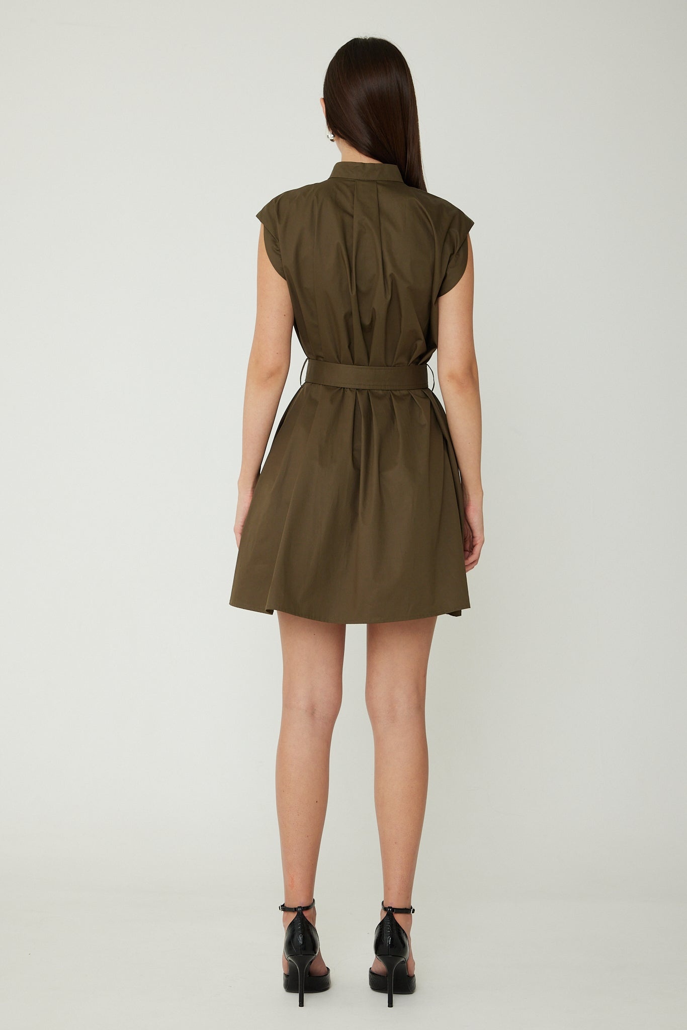 The Barbara dress showcases a beautiful olive shade and a mini silhouette with sporty, utilitarian sophistication. Effortlessly elevate or relax your look by switching shoes.