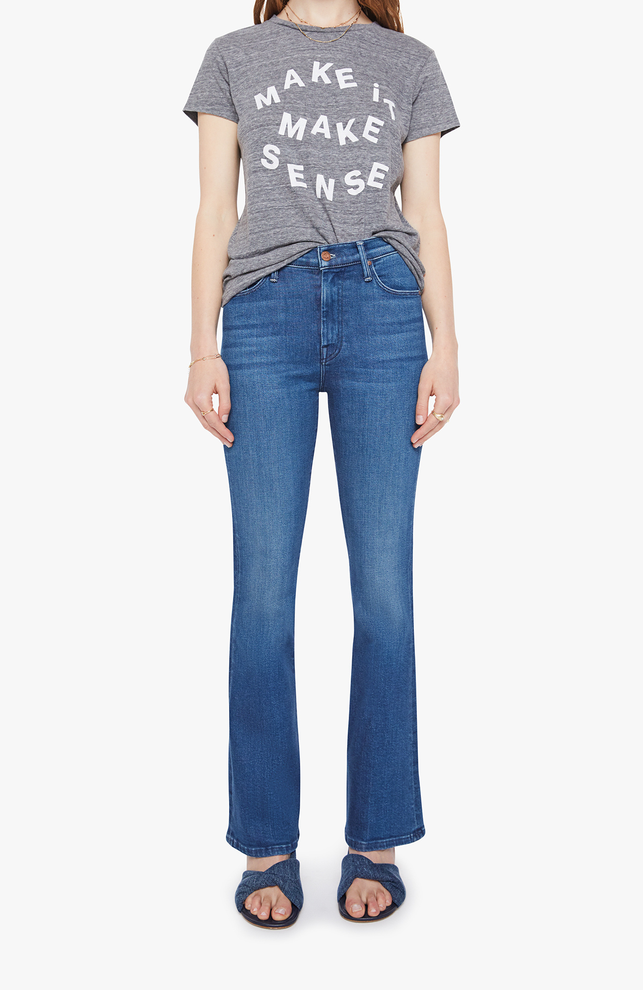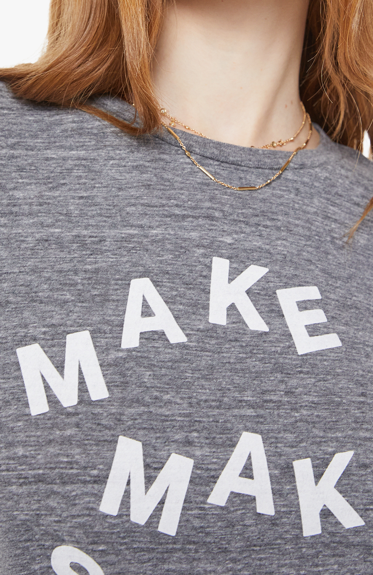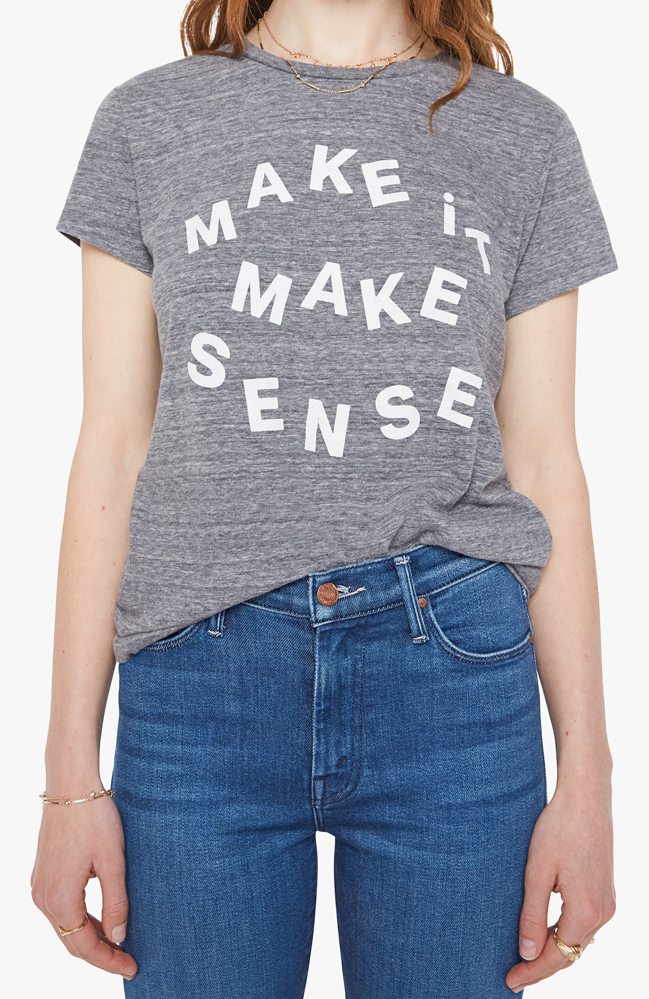 Make it make sense. A soft crewneck with a slim fit for a vintage look and feel. Made from a soft cotton blend in heathered grey, the tee features white block text on the front.