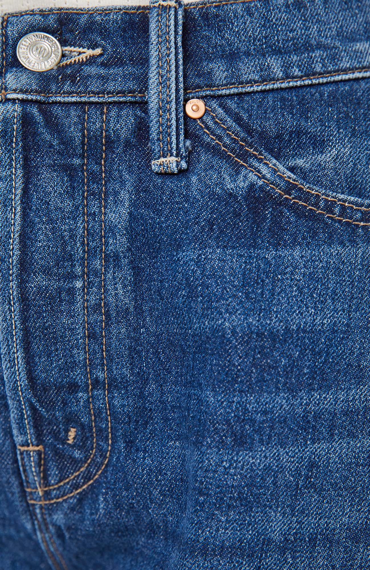 Sharing is caring. Super high-waisted denim shorts with a button fly, 3.25-inch inseam and a wide leg opening that flares out. Made from rigid SUPERIOR denim, Did You Bring Me Anything is a dark blue with subtle whiskering and fading.