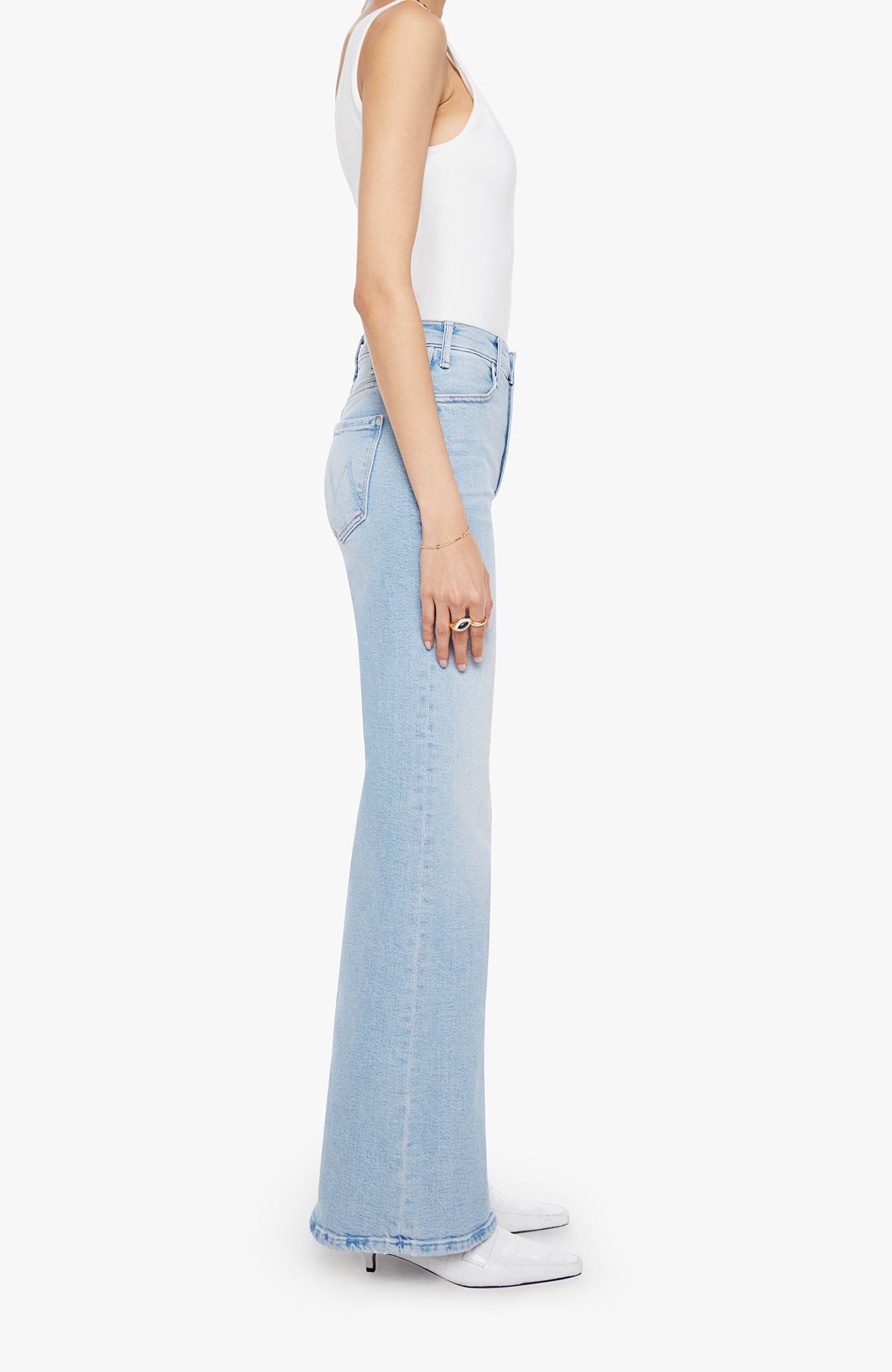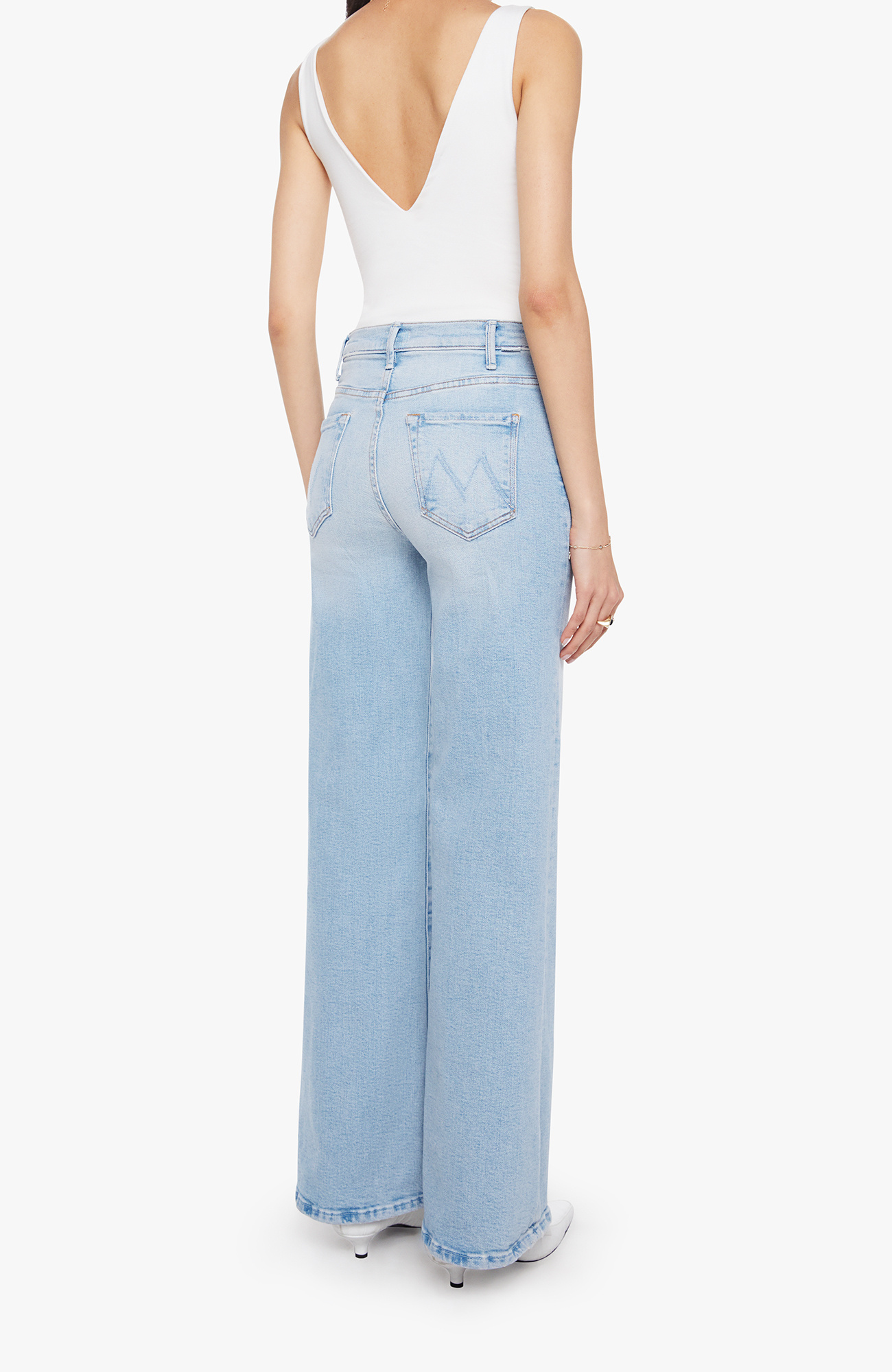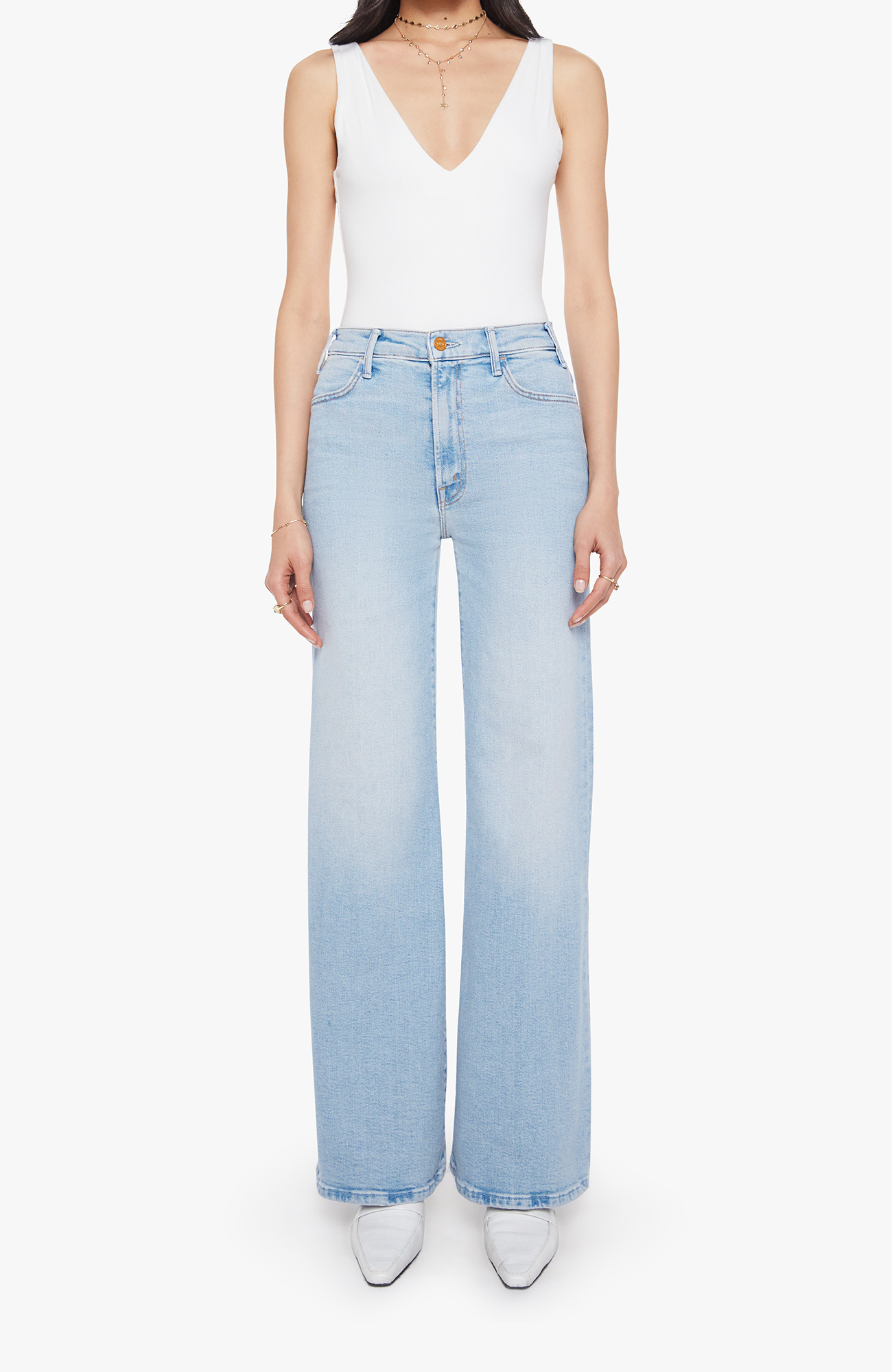 Full circle moment. 70s-inspired wide leg jeans with a high rise, zip fly, 32-inch inseam and a clean hem. Cut from stretch denim, Complete 360 is a light blue with subtle fading throughout.