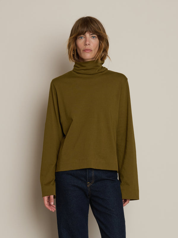 The Neo Turtleneck is a throwback with staying power—cut from 100% pima cotton with thoughtful tailoring techniques to fit and move just right. A relaxed mock neck, bell sleeves, and side slit do the work for you, on or off the clock.