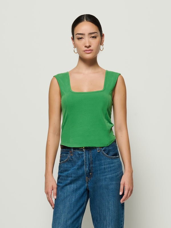 Meet the goes-with-absolutely-everything tank your closet needs. Square neckline with binding, princess seam details, wide straps, and a fitted, ultra-form-flattering silhouette.