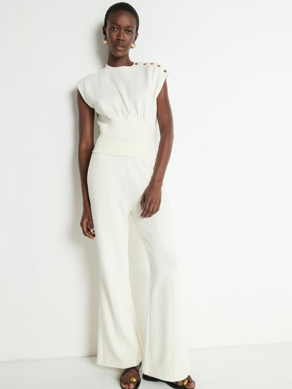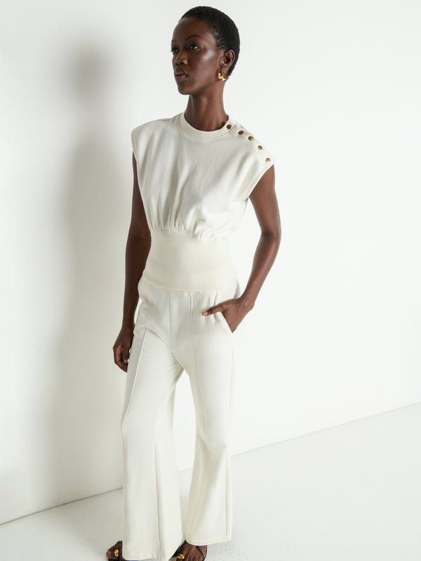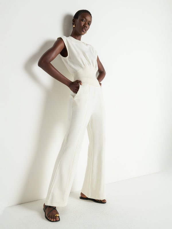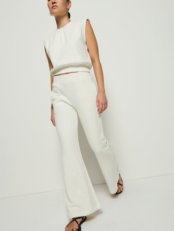 Meet the sweatpants that look just as good as they feel, featuring on-seam pockets, pintuck details, a folded, elastic waistband, and a subtle kick flare silhouette.