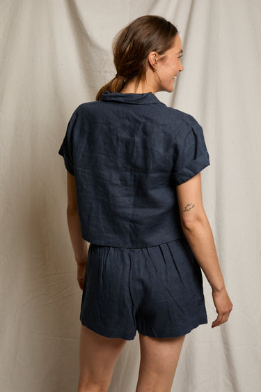 Linen, but make it a polo. The Tabitha is our answer to dressing in the heat. An airy, 100% linen top that trades the stuffiness of a traditional collared shirt for an open neckline and sharp boxy with a slightly cropped hem.