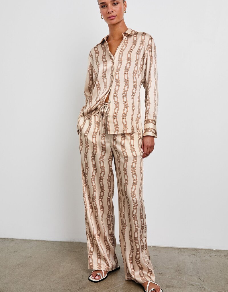Experience elevated comfort with the Damani. This wide-legged drawstring pant features pockets and a statement-making, gold-link print. Pair with the Ledger shirt for an ultra-luxe outfit designed for everyday wear.