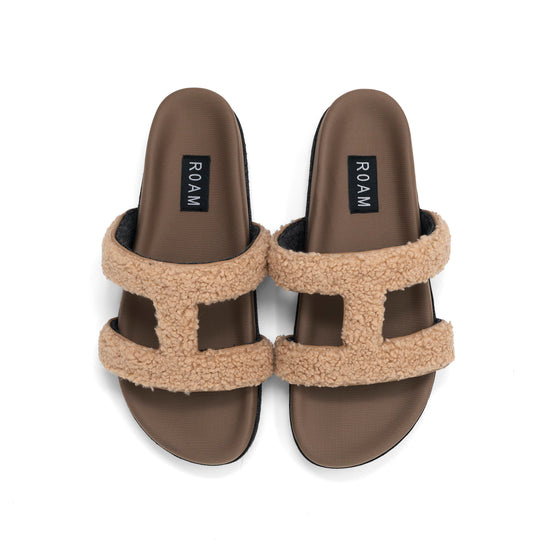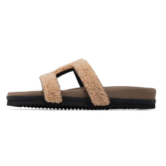 ROAM Fuzzy Cuffs Sandal - Beige Faux Shearling