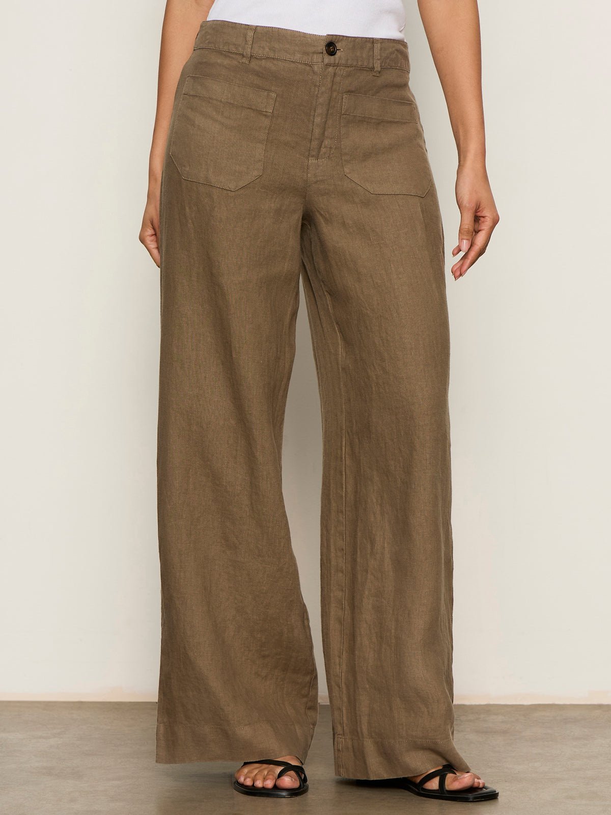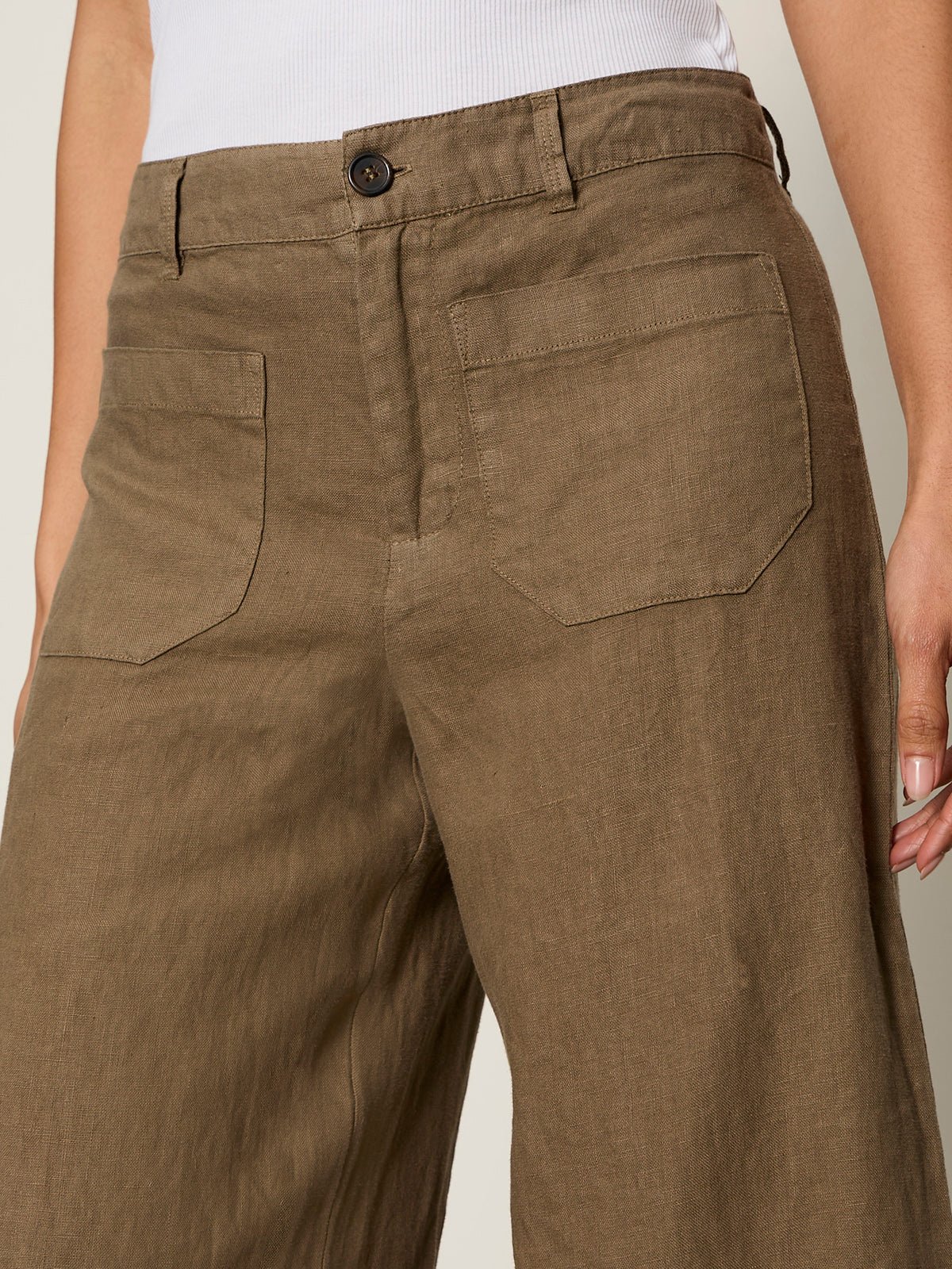 Everyone needs a linen pant in their closet. This pair features a high waist, front patch pockets and a relaxed fit.