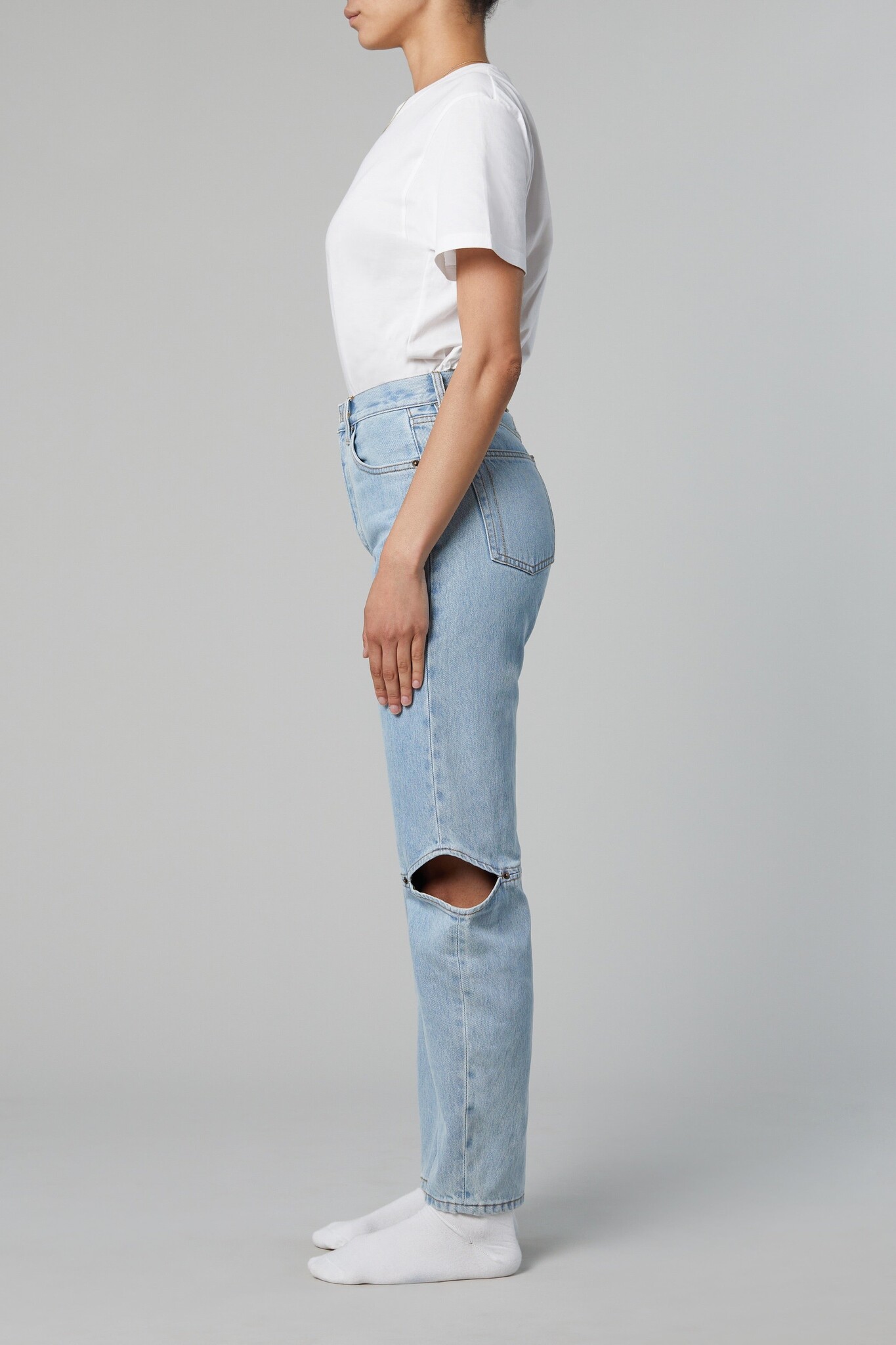 The Cowgirl is inspired by horseback riding cowgirls of the late 19th century. This jean features an inward angled leg and diamond cut-outs on the side knee. Features a classic button fly and signature 'SH' embroidery.
