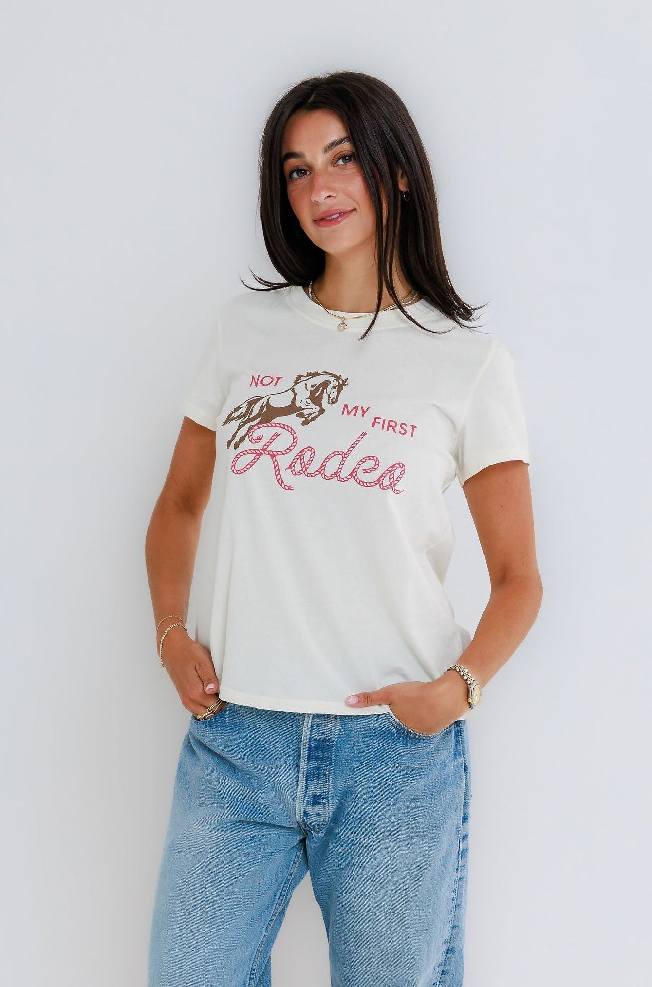 The Not My First Rodeo Femme Crew brings a little grit with a whole lot of charm. With its vintage inspired graphic and easy fit, it feels bold, playful, and quietly powerful.