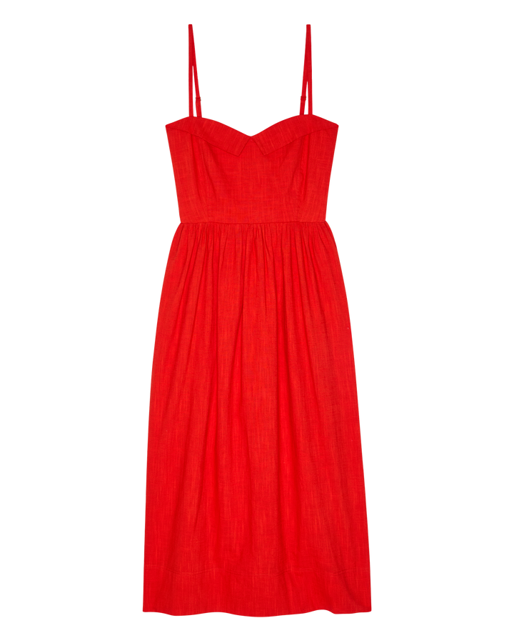 Cut from airy, textured cotton, it’s designed with structured boning at the sides to create a sculpted silhouette, while smocking at the back offers comfortable ease through the body.
