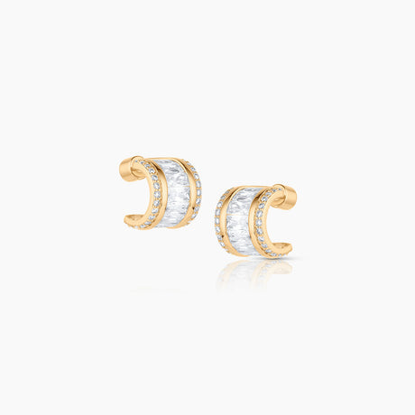 These dazzling hoop earrings blend pavé and baguettes to create a luxurious statement. Inspired by high glam of the 40s, these are our dressiest earrings for every celebration.