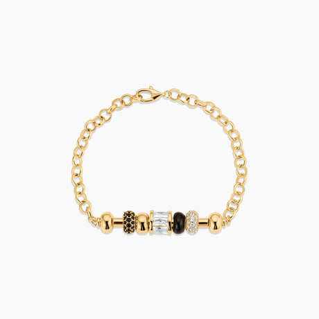 The iconic black and gold Noir Bead Set got an ultramodern refresh. A mix of texture, color, and shine blends seamlessly with the chunky chained Cosmo Bracelet, designed for all your favorite beads.