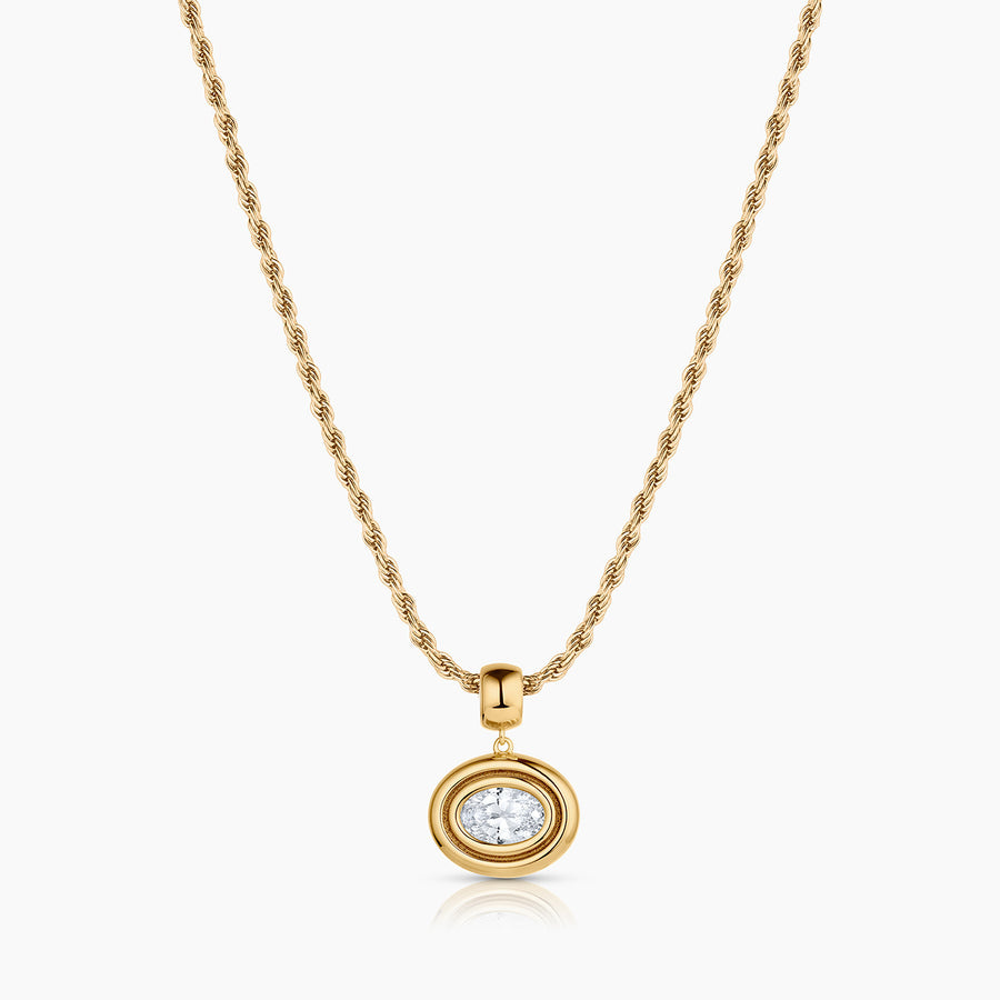 This ovular charm pairs rounded edges with a large dazzling CZ for a look that's full of glimmer and shine.