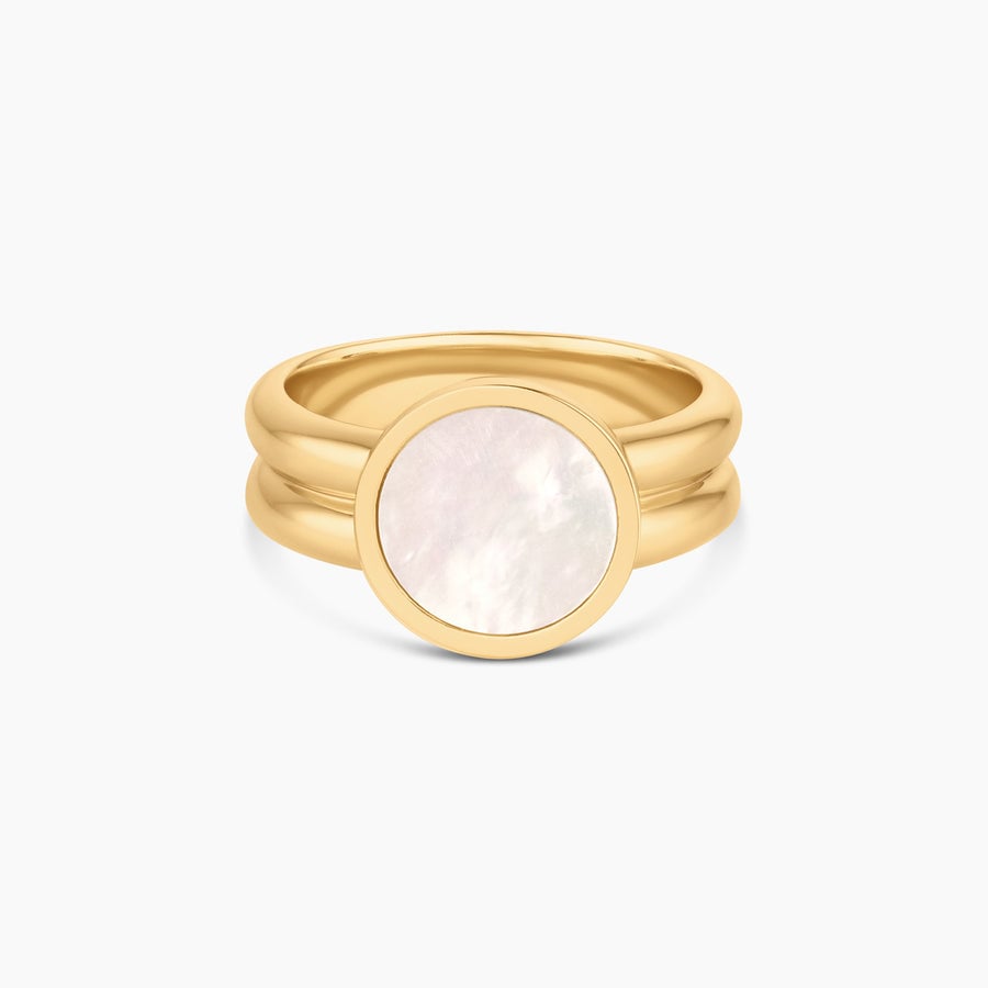 A bold double band meets 100% natural mother of pearl for a statement that will make your ring stack feel complete.