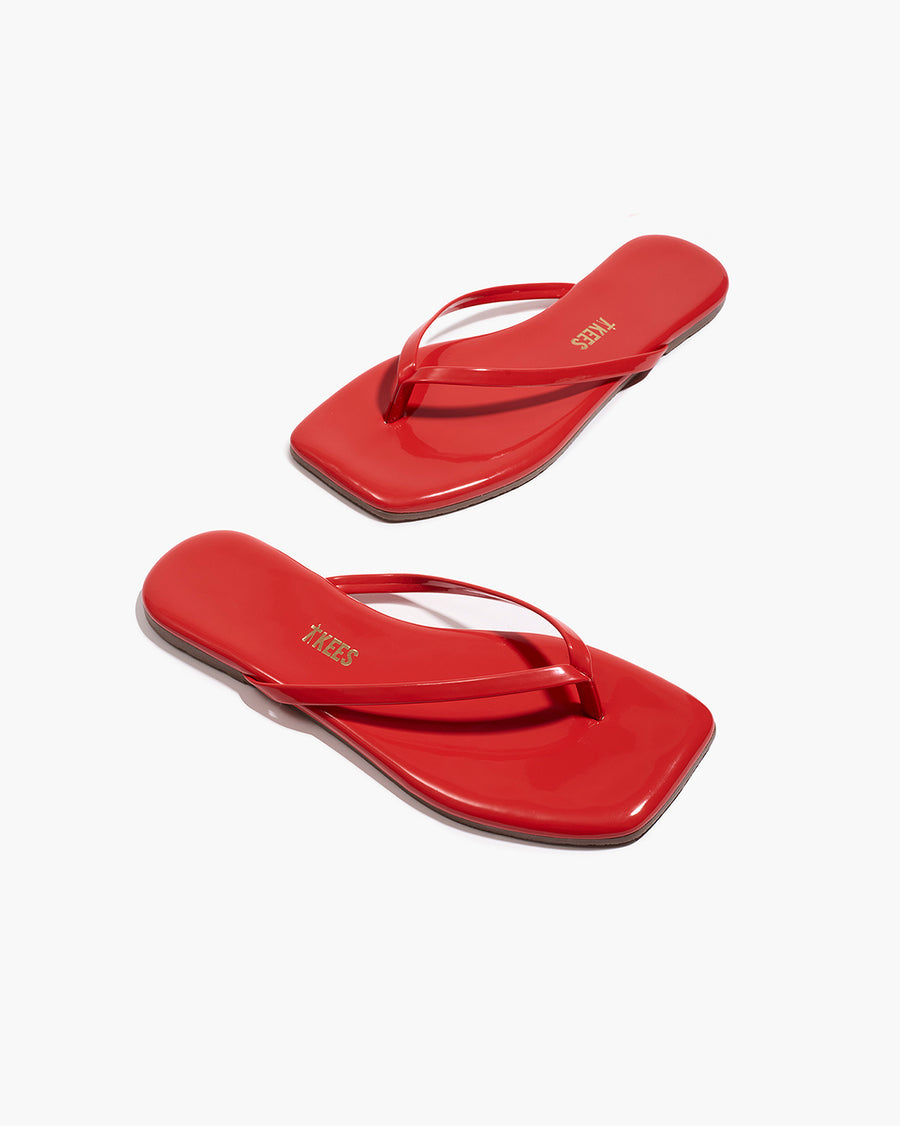 Sophistication with an edge. Clean lines, modern design, and fiery red color - pure statement flip flop. Elevate any outing, from casual to chic, effortlessly.