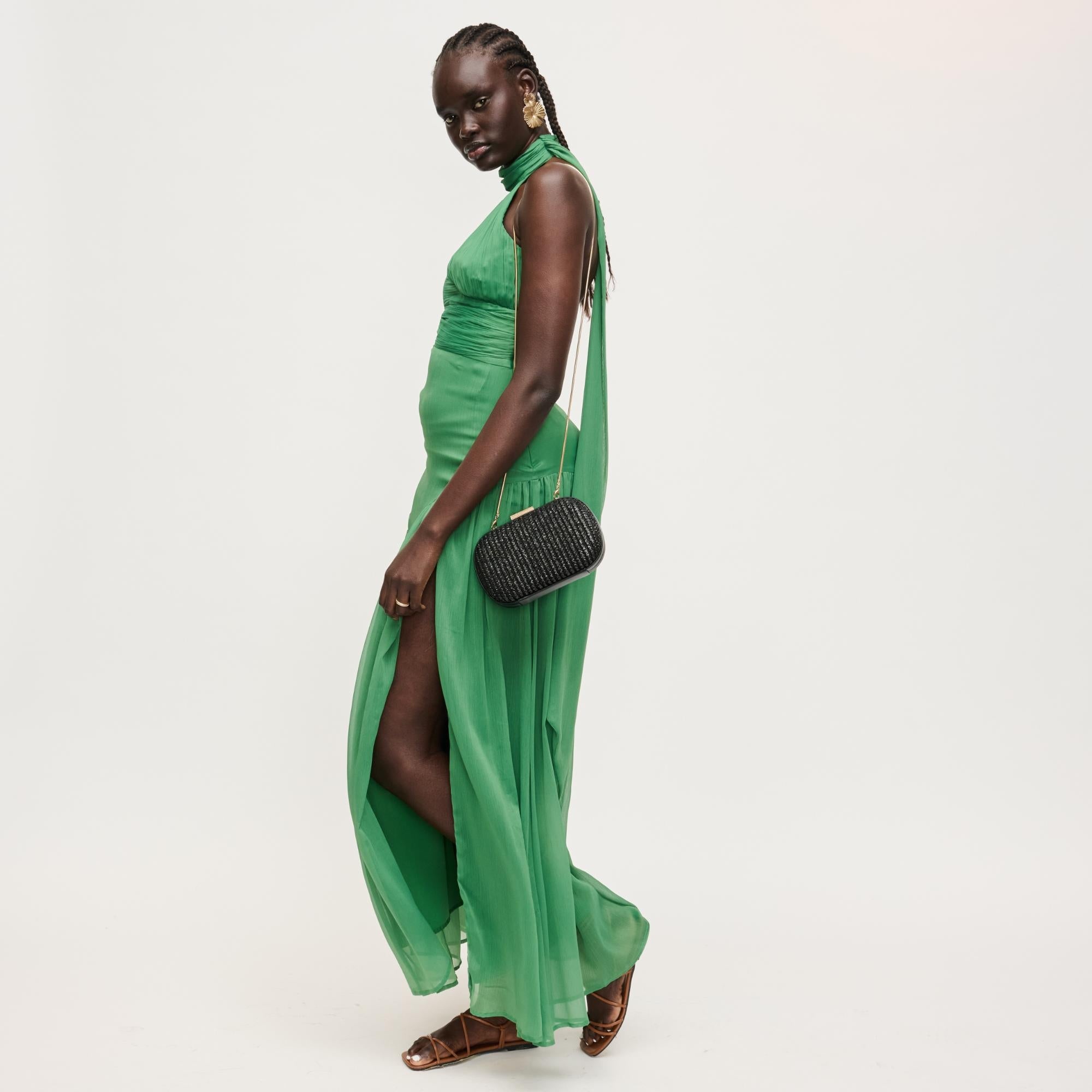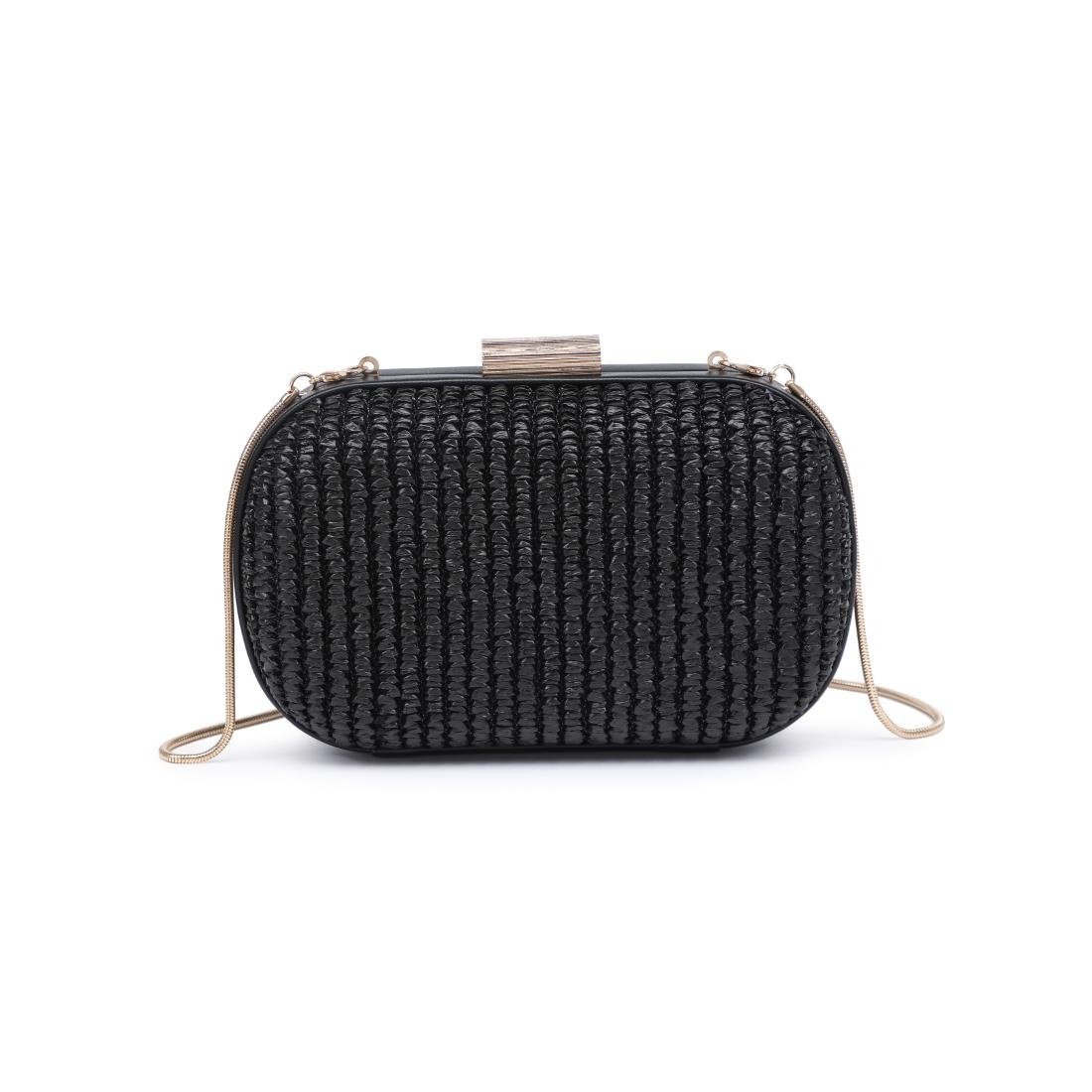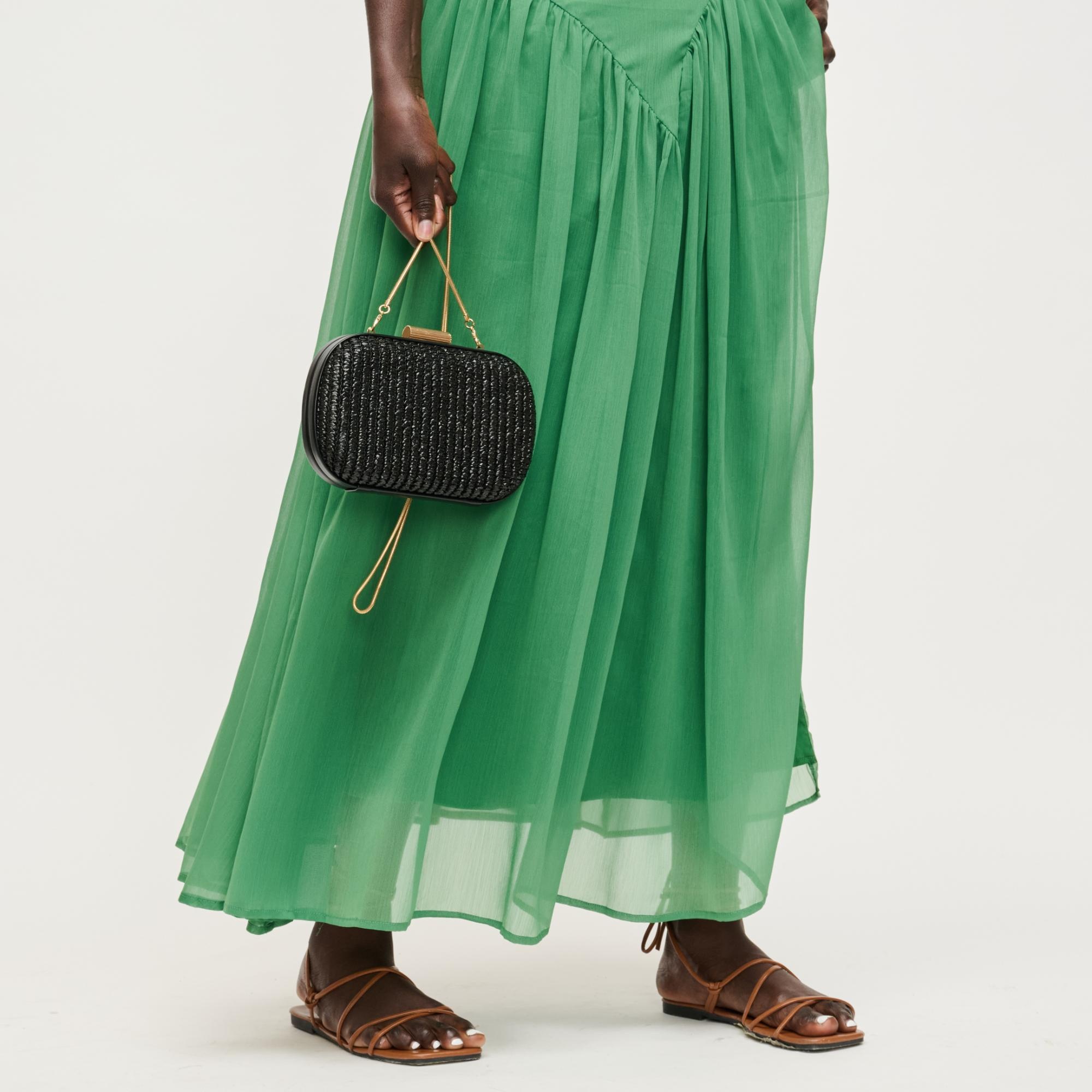Woven-texture evening box, Alix Evening Bag. Compact, structured silhouette with gleaming hardware and a detachable chain strap. Room for phone, cards, keys, lipstick. Perfect for events, nights out, or special occasions.