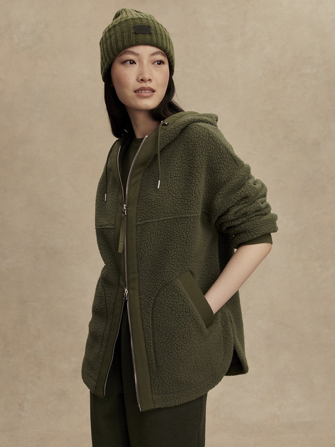 The perfect fleece layer with pockets, toggled hoodie and full zip closure.