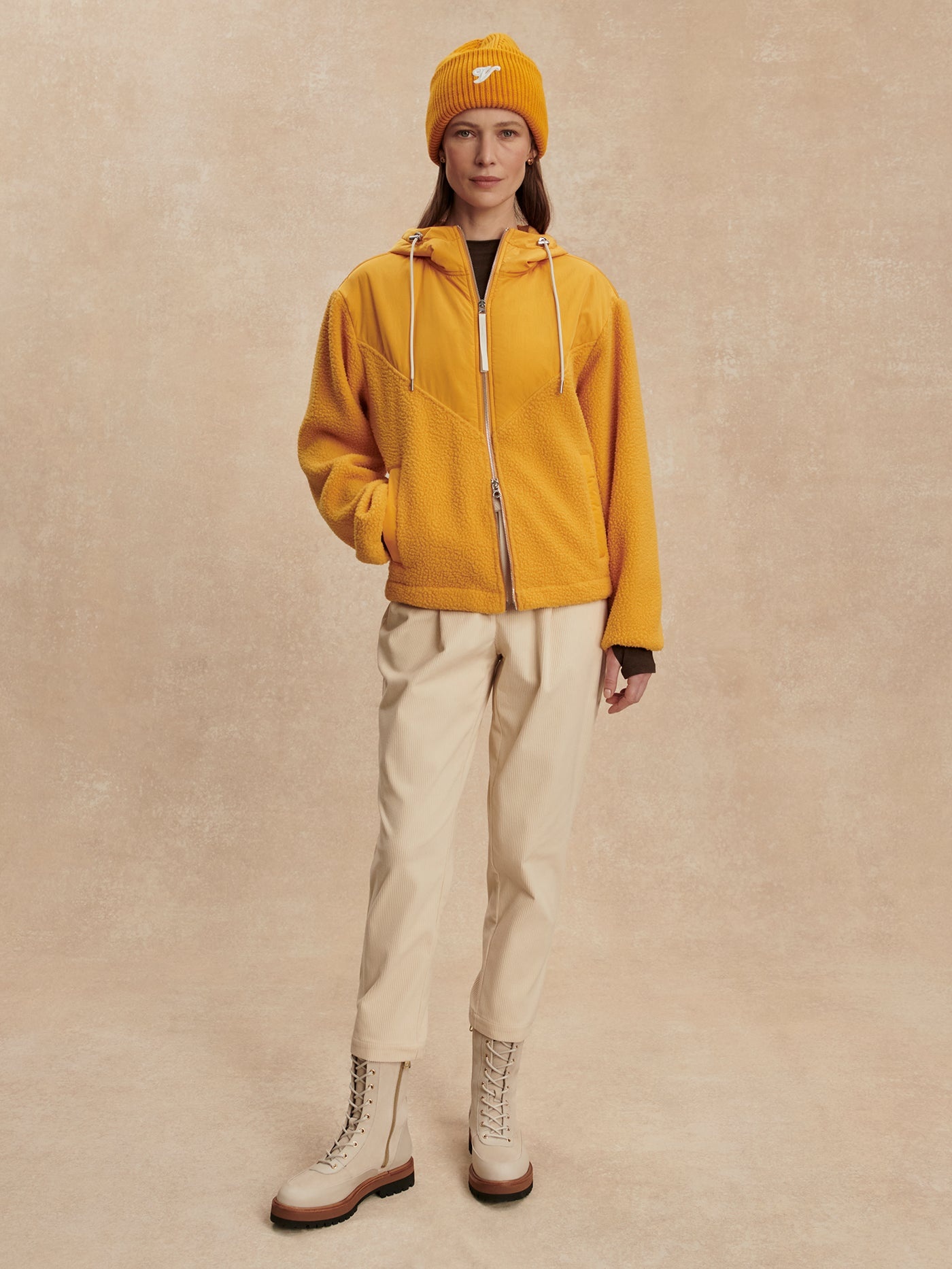 Crafted from Plush Borg Fleece, the Rosia is super soft and perfect for easy everyday wear. The large hood and woven, V-shaped panel add a structural statement to the relaxed fit, while light filling to the hood and neck adds extra warmth.